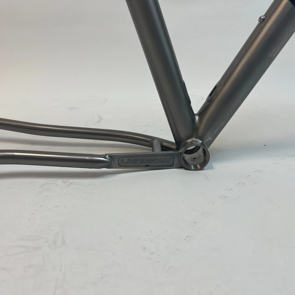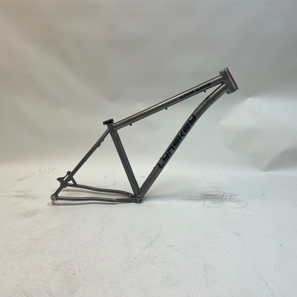 Lynskey Livewire Titanium Mountain Bike Hardtail Frame. Geometry and Fit Chart can be found in Frame Images Section Above Price includes FREE 12mm Rear Axle AND graphics upgrade of your choice, a $300 Value Options include Standard Black Decals, Etched Graphics, Anodized Graphics (choices include Gold, Purple, Light Blue, Dark Blue, or Acid rain (All colors together in a swirl Pattern, Picture pouring oil on water), or no graphics. Please mention your choice in the Notes or Message us after the Purchase. The Lynskey Live Wire Titanium Hardtail is a handcrafted trail frame made in Chattanooga, Tennessee from durable 3AL/2.5V titanium. Built for riders who want a strong, responsive, and comfortable bike, it’s optimized for 130–140mm travel forks and modern trail geometry. The Live Wire delivers quick acceleration, confident handling, and smooth performance over technical singletrack, climbs, and descents—making it a reliable choice for riders seeking a titanium mountain bike frame that’s built to last. Size Guide Small: Rider height 5'3"–5'5", standover ≥ 29" (with shoes) Medium: Rider height 5'6"–5'9", standover ≥ 29.8" (with shoes) Large: Rider height 5'10"–6'2", standover ≥ 31.5" (with shoes) XL: Rider height 6'3"+, standover ≥ 32.45" (with shoes) Available Options Frame Only Frame, Headset, Rear Axle Package - includes Frame, FSA Orbit C-40 Headset, and Rear Axle Geometry chart available in photos. Features 3AL-2.5V Titanium Tubeset Industrial Mill Finish with Black Decals Internal Routing Ports for dropper post External Cable Routing for Derailleur and Brake(Under Downtube) Tapered Headtube (IS42/IS52) 31.6mm Seatpost 38.1mm Seattube Collar 12x148mm Boost Rear Hub Spacing 73mm English BSA Bottom Bracket Post Mount Disc (160mm native, 180mm with adaptor) Wright Dropouts with replaceable hanger Max Tire Clearance: 29 x 2.5 or 27.5 x 3.0 Replaceable Derailleur Hanger: DW-200 Package Contents Frame, Headset, Axle Package Includes: FSA Orbit C-40 Headset – IS42/IS52 with short stack cap Alloy Rear Thru-Axle – 12x148mm, 174mm length, 1.0 thread pitch Helpful Info Suggested Rear Axle: 12mm x 169-174mm x 1.0 thread Suggested Fork: 130mm travel, 44mm rake, 1-1/8" to 1.5" steerer Suggested Headsets: FSA Orbit C-40 Headset, Cane Creek 40 IS42/52, Cane Creek 110 IS42/52, Chris King Dropset 2 Warranty All Lynskey titanium frames include a Limited Lifetime Warranty for the original owner. Your frame will be registered with Lynskey upon purchase through this eBay store. Payments Please see the Shipping, Returns, and Payments section for details. Shipping & Handling Frames are professionally packaged for protection Please inspect your frame upon delivery and report any damage within 3–5 business days International buyers: you are responsible for import duties/taxes in your country Returns & Exchanges Returns accepted within 30 days of delivery on new, unused items. Buyer responsible for return shipping. Please package carefully – refunds may be adjusted if damage occurs in transit. Contact Us Questions? Please contact us through eBay. We typically respond within 1 business day (48 hours during holidays/weekends). Thank you for choosing Lynskey. We hope you enjoy your frame – Get out and ride!