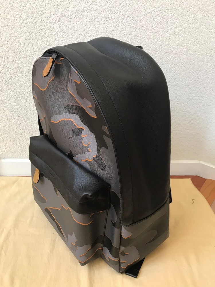 It is brand new authentic Coach Coach Charles Backpack with Camo Print Color : Grey Multi Measurements : 13 3/4" (L) x 17 1/4" (H) x 6" (W) Printed Coated Canvas and smooth calf leather Inside zip and multifunction pockets Inside Laptop sleeve with secure tab Zip close, fabric lining. Adjustable shoulder straps Outside zip pocket *** SAME day shipping if order by NOON PST *** *** GUARANTEED 100% AUTHENTIC or YOUR MONEY BACK *** *** IN SMOKE AND PET FREE HOME ***