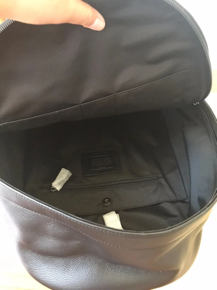 gtin13: 192643076853 Type: Backpacks UPC: 192643076853 Color: Grey Multi Size: 13 3/4" (L) x 17 1/4" (H) x 6" (W) Department: Men Pattern: Sports Style: Backpack Features: Laptop sleeve with secure tab, Adjustable Straps Hard/Soft: Soft Material: Printed Coated Canvas and smooth calf leather Brand: Coach