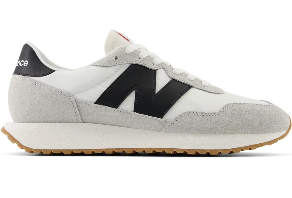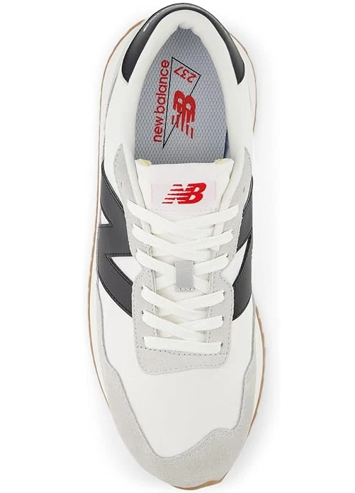 Step on in confidence and style with these vintage-inspired yet contemporary New Balance 237 Men's Running Shoes. TECHNOLOGIES & FEATURES Gator inspired foxing and mudguard Asymmetric rubber tip wrap Oversized N logo with large scale ripple branded outsole Breathable design for comfort on your runs DETAILS Leather suede and mesh upper Polyester mesh lining Large scale herringbone ripple outsole with text branding EVA midsole Foam footbed Round toe style Lace-up closure Removable insole Spot clean Imported