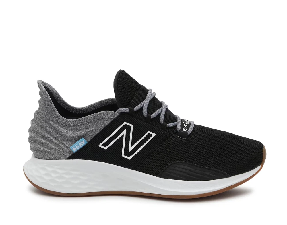 Pattern: Solid Style: Sneaker Cleat Type: Rubber Outsole Material: Rubber Brand: New Balance Occasion: Activewear, Casual, Workwear Performance/Activity: Gym & Training, Running & Jogging, Walking Fabric Type: Blended Fabric Upper Material: Mesh Features: Breathable, Comfort, Cushioned Type: Athletic Insole Material: Foam Accents: Logo Color: Black/Gray Shoe Width: B Closure: Lace Up Model: New Balance Fresh Foam Roav Department: Women Shoe Shaft Style: Low Top Lining Material: Fabric