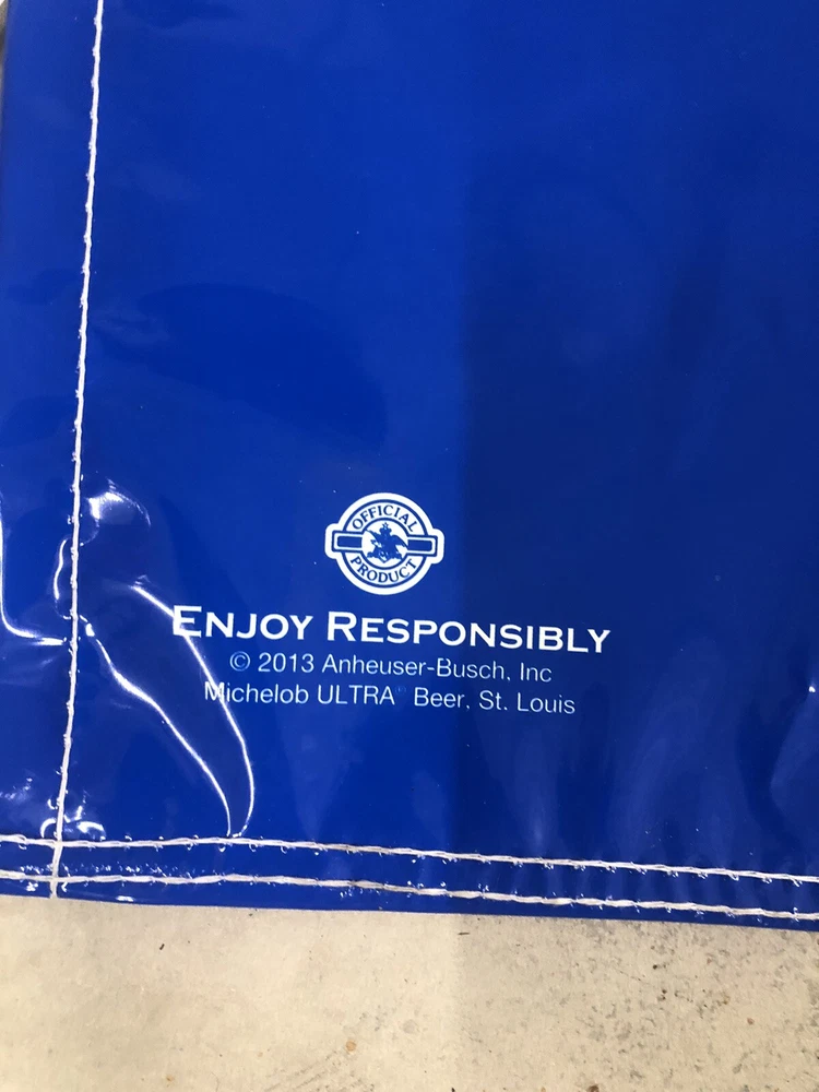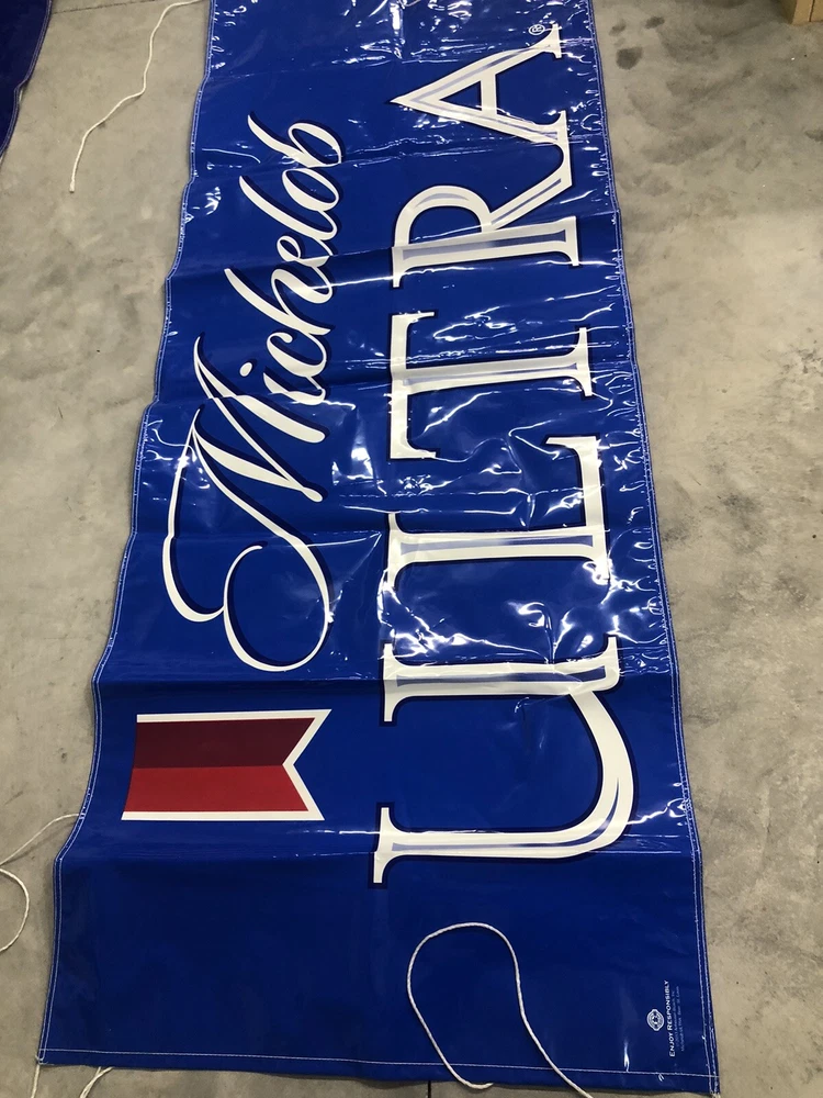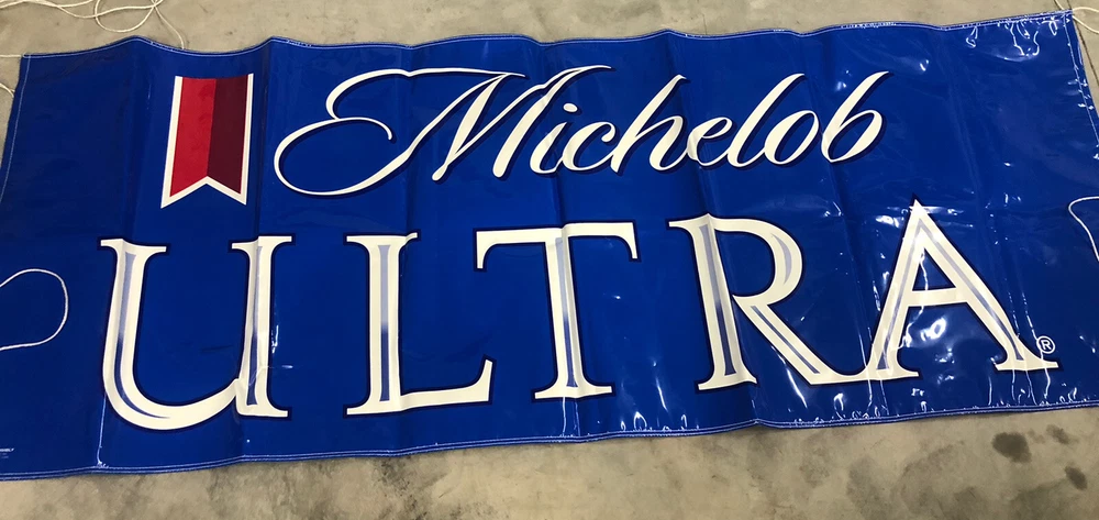 This Michelob Ultra beer banner sign from Budweiser is a must-have for any beer enthusiast who loves collecting breweriana items. The sign features the iconic Michelob logo and is made of high-quality materials to ensure its durability. Perfect for home bars, game rooms, or man caves, this sign is sure to impress your friends and family. The sign is brand new and has never been used or displayed before. It is an officially licensed product from Budweiser, making it a genuine piece of Michelob memorabilia. The sign is perfect for collectors or anyone who wants to add a touch of vintage charm to their space. Banner measures just at 3ft by 8ft.