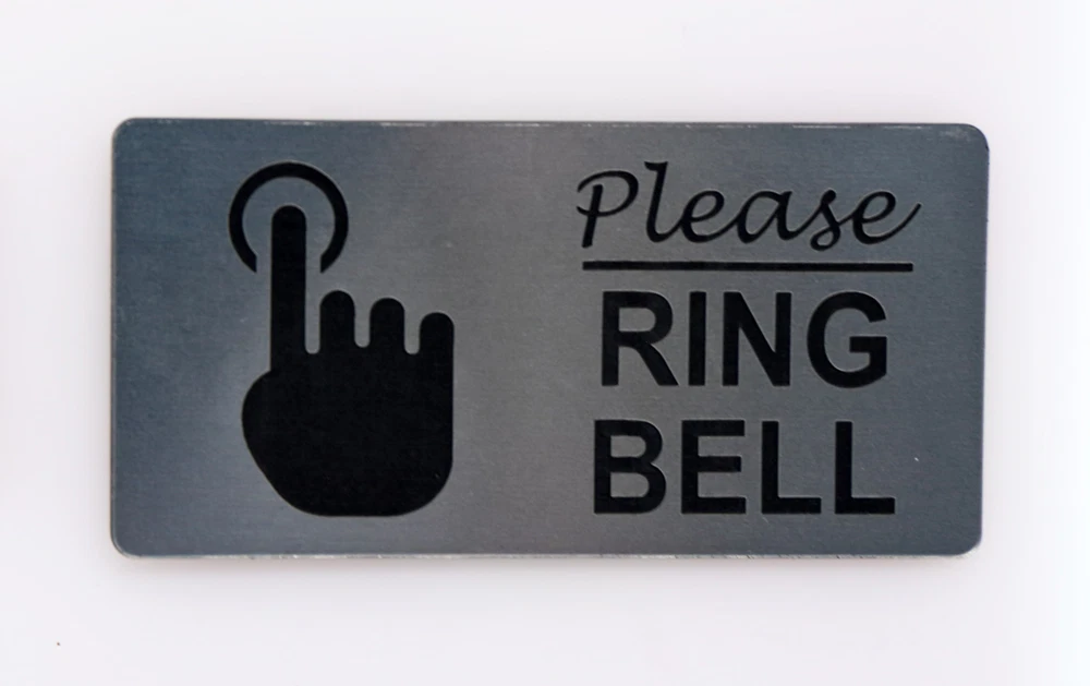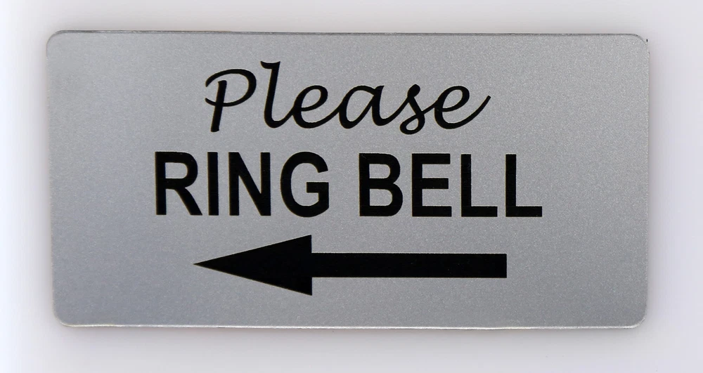 FLASH SALE STOCKED ITEMS PLEASE RING BELL LASER ENGRAVED SIGN TAG MADE IN AUSTRALIA ALL PLAQUES INCLUDE ADHESIVE BACKING UV RESISTANT Ordering Instructions: Step 1: Simply select your design choice . Step 4: Please select your colour choice and add your order to your shopping cart. Size Dimensions: 95mm x 45mm 9.5cm x 4.5cm Please Contact us if you need a large quantity We can engrave special requirements, such as company logos or cartoon characters if required. Please send details through eBay if Applicable. Visual Art Provides a full In house Engraving and Laser Engraving service. Items such as, stainless steel house numbers and signs, electrical tags, pens and jewellery can all be personalised to your requirements. We strongly advise that customers Select Registered Post with tracking for the piece of mind and security for your item(s) guaranteed delivery.