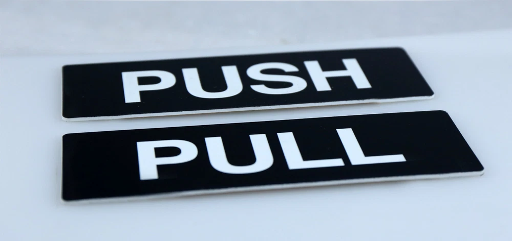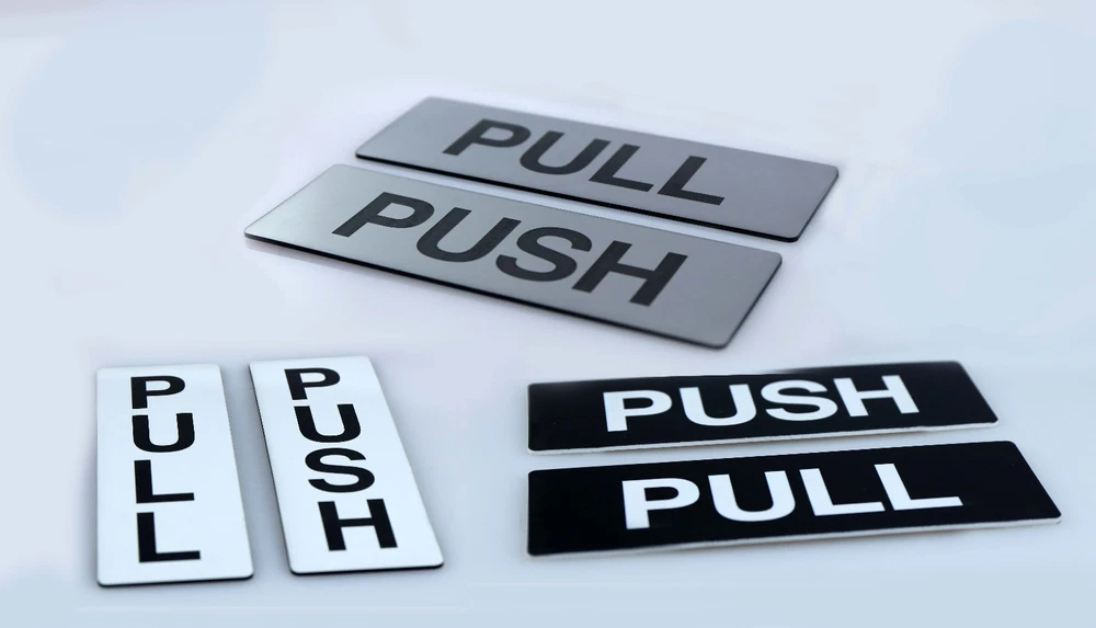 FLASH SALE STOCKED ITEMS LASER ENGRAVED PUSH PULL SIGN DOOR HALL BUILDING SIGN MADE IN AUSTRALIA All Plaques Include Adhesive Backing. 1.6MM THICK UV Resistant Please contact us if you need a large quantity. Choice of Blue, Black, Silver and Gold Available sizes: 145mm x 45mm or 195mm x 70mm Engraving Details: Step One: Simply select your colour choice. Step 2: Select your size option and add your order to your shopping cart . Step 3: Select your shape option - Horizontal or vertical We can engrave special requirements, such as company logos if required. Please send details through eBay if Applicable. Visual Art Provides a full In house Engraving and Laser Engraving service. Items such as, stainless steel house numbers and signs, electrical tags, pens and jewellery can all be personalized to your requirements. Please quote eBay username and double check all spelling! We strongly advise that customers Select Registered Post with tracking for the piece of mind and security for your item(s) guaranteed delivery.