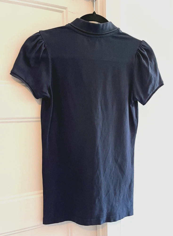 Type: Polo Theme: Preppy Seller Notes: “Pre-owned - Worn only a couple of times, great condition. There is no apparent defect.” Sleeve Length: Short Sleeve Accents: Button Brand: Burberry Material: Cotton Size Type: Regular Features: Unlined Sleeve Type: Puff Sleeve Neckline: Collared Department: Women Pattern: Solid & Plaid Accent Color: Dark Blue Season: Fall, Spring, Summer, Winter Occasion: Casual, Workwear Fit: Slim Closure: Button Size: S Style: Basic