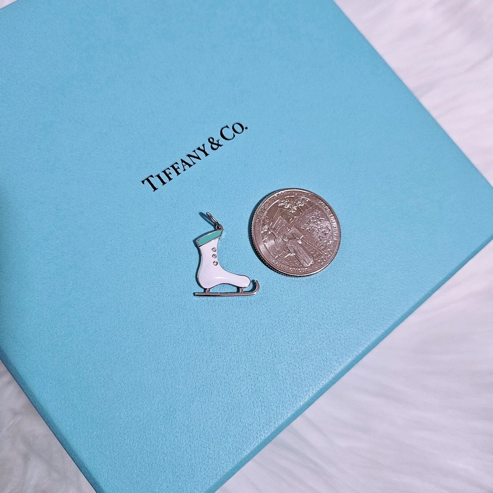 🩵FLASH SALE🩵 Introducing a highly sought-after piece from Tiffany & Co., this exquisite platinum enamel charm/ pendant features a beautiful ice skate design. It is intricately crafted with 950 metal purity and adorned with 3 sparkling round diamonds. This rare piece is a perfect addition to any jewelry collection and a unique gift for any occasion. Like new condition. May have light scratches from storage. The same one currently goes for $1795. My loss is your gain! Comes with a vintage Tiffany blue paper box. ʕ•ᴥ•ʔ✿ NOTE: I've been a Tiffany lover and collector since 2018. I truly enjoy sharing beautiful, authentic Tiffany & Co. items with others and to support my “blue box” passion. All sales are final, and no returns are accepted for any reason. If a return is requested, a 20% restocking fee will apply. I ensure each item is exactly as described and shown in the photos, so please take a moment to read the descriptions and review the photos carefully. I also record a video before shipping to guarantee everything is in perfect order. ♡ 5-⭐️star rating would be much appreciated! Please ask me if you have any questions before purchase. Thank you!