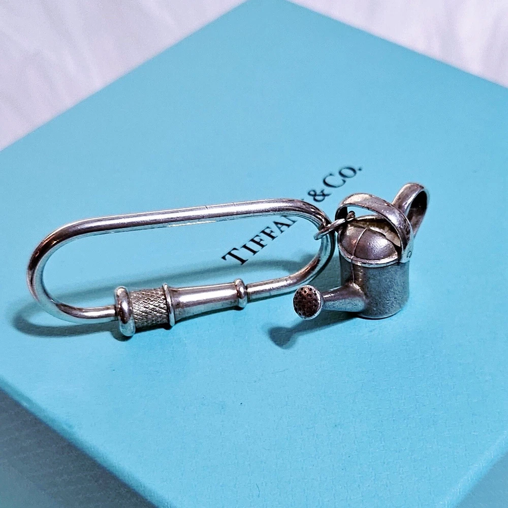 🩵FLASH SALE🩵 This Tiffany & Co. Watering Can Keychain is truly a unique find. The charm features a cute silver watering can design, perfect for any gardening enthusiast or lover of Tiffany & Co. products. The key ring is sturdy and durable, ensuring that your keys will be safe and secure. RARE, Retired. The same one goes for $660. In good condition. Does have scratches from normal wear. Please zoom in every photo as a part of the description. The watering can wasn’t soldered with the key ring. That’s why you may want to consider to use it as a charm or a pendant. Comes with a T pouch. ʕ•ᴥ•ʔ✿ NOTE: I've been a Tiffany lover and collector since 2018. I truly enjoy sharing beautiful, authentic Tiffany & Co. items with others and to support my “blue box” passion. All sales are final, and no returns are accepted for any reason. If a return is requested, a 20% restocking fee will apply. I ensure each item is exactly as described and shown in the photos, so please take a moment to read the descriptions and review the photos carefully. I also record a video before shipping to guarantee everything is in perfect order. ♡ 5-⭐️star rating would be much appreciated! Please ask me if you have any questions before purchase. Thank you!