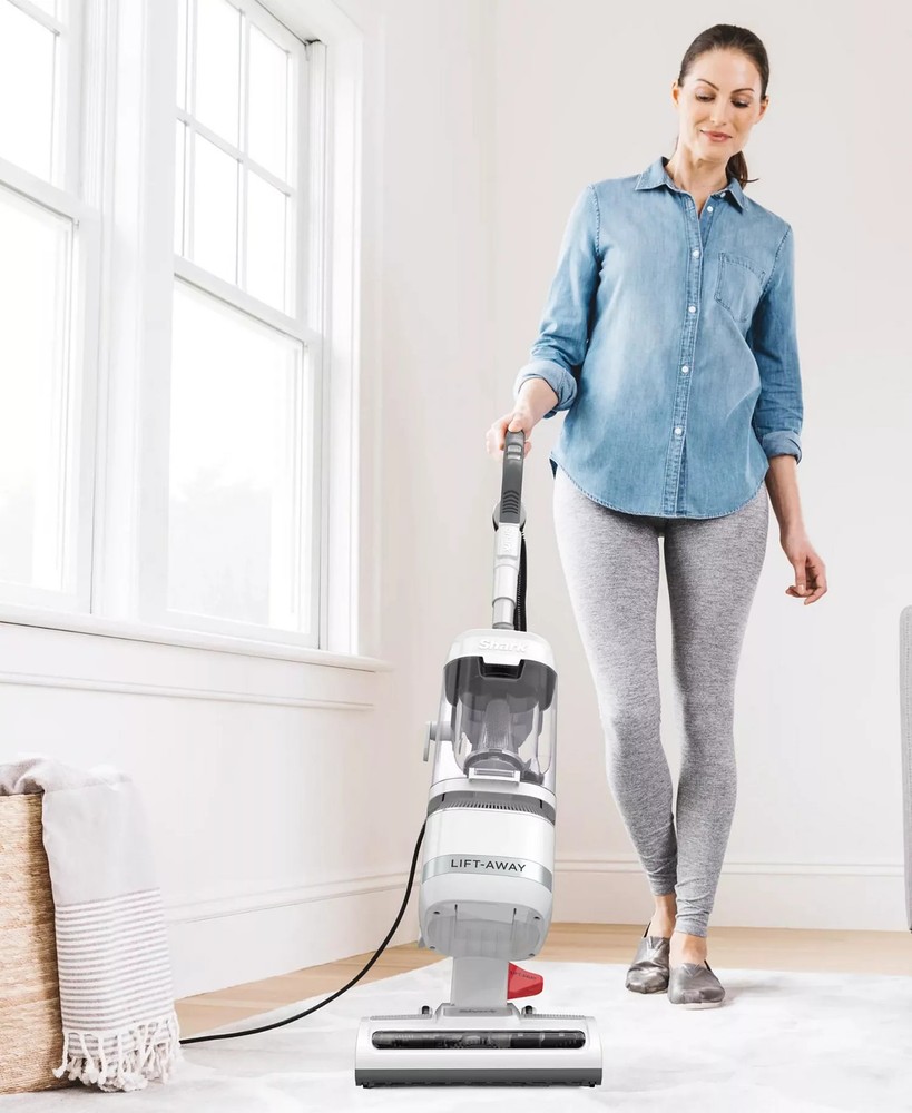 The Shark Navigator Lift-Away ADV Upright Vacuum features a lighter and easier-to-detach Lift-Away pod for go-anywhere cleaning. Features Product dimension: 10"L x 12"W x 46.5"H Product weight: 12.3 lbs. Lift-Away the detachable pod with the easy-to-use pod-release pedal to clean stairs, furniture, and more. Deep cleaning on carpets, strong suction on hard floors, and powerful pet hair pickup. Anti-Allergen Complete Seal Technology and HEPA filter trap 99.9% of dust and allergens inside the vacuum cleaner. (based on ASTM F1977 down to .3 microns) A lighter pod than Shark's best-selling Lift-Away, with more suction for versatile whole-home cleaning. (weight and suction vs. NV351, suction measured at the hose) Advanced swivel steering lets you easily maneuver your vacuum in and out of tight spaces, around furniture, and more. Includes tools to tackle stubborn pet hair and hard-to-reach spaces. Metal, Plastic, Rubber Wipe clean