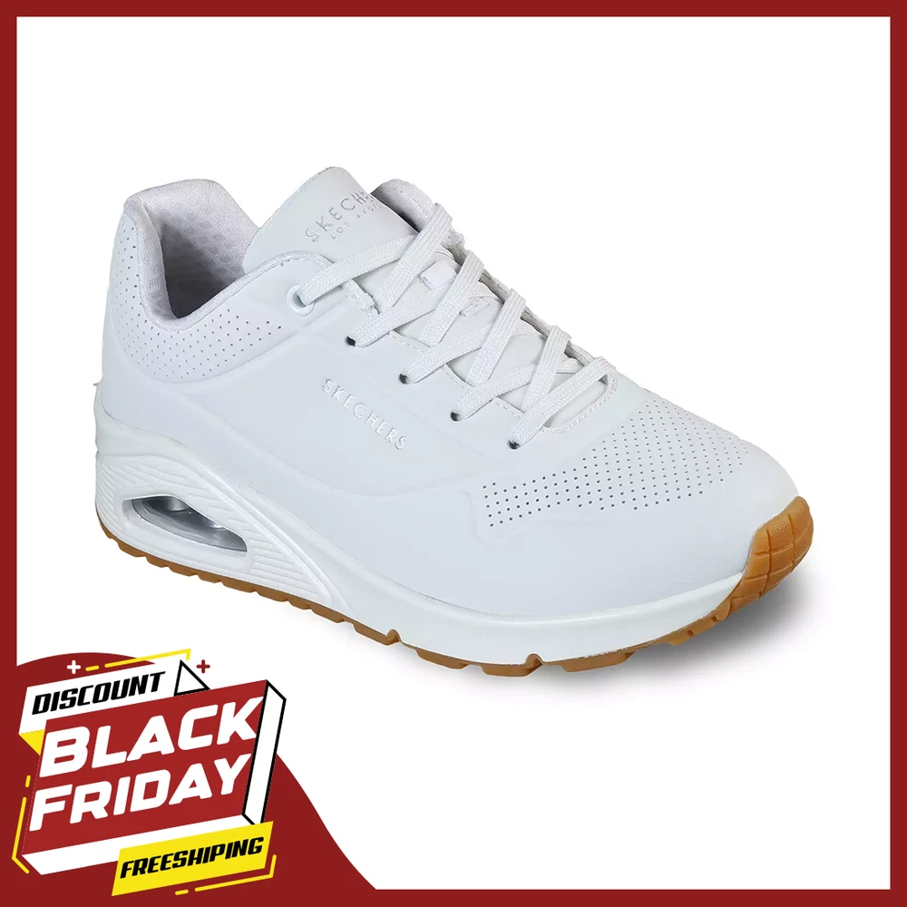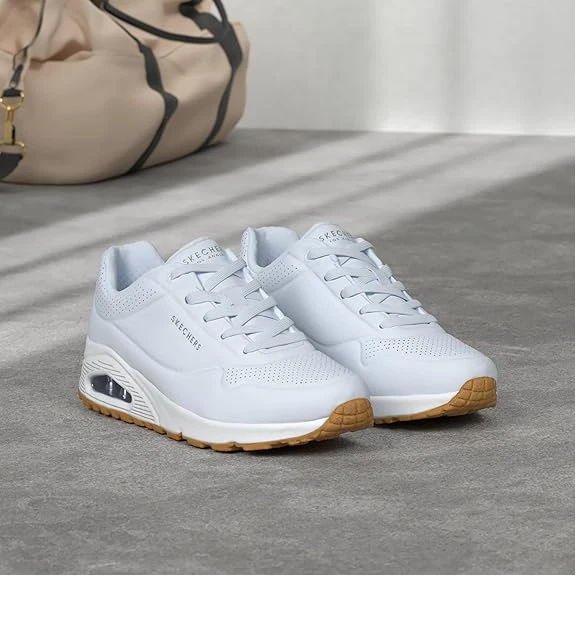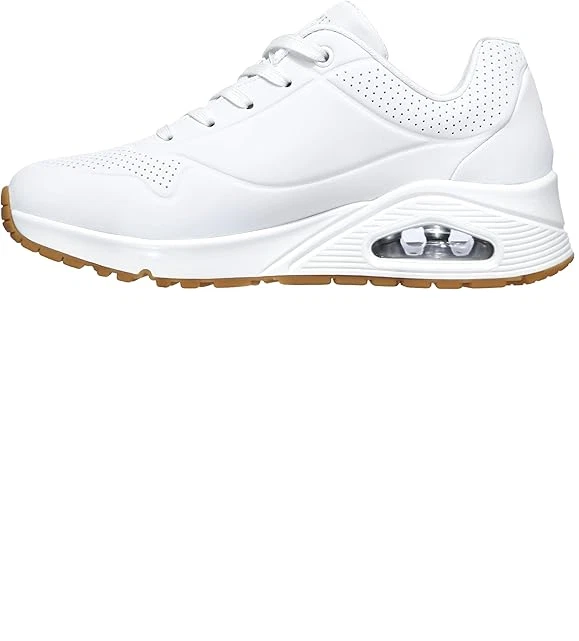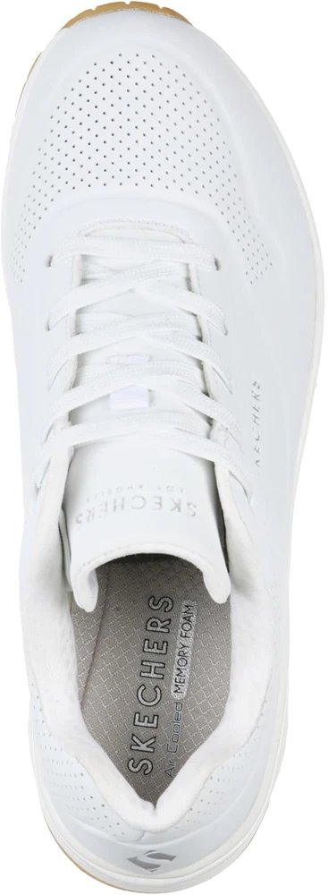 Classic air cushioned style meets updated comfort in these Skechers Street Uno sneakers. SHOE FEATURES Smooth leather-textured synthetic upper in a lace up classic fashion sneaker with stitching and perforation accents Classic style midsole with embossed texture detail Midsole with visible air cushioned shock absorbing heel pad Air Cooled Memory Foam insole SHOE CONSTRUCTION Faux leather upper Polyester lining Rubber outsole SHOE DETAILS Lace-up closure Foam footbed 1.50-in. heel height Spot clean