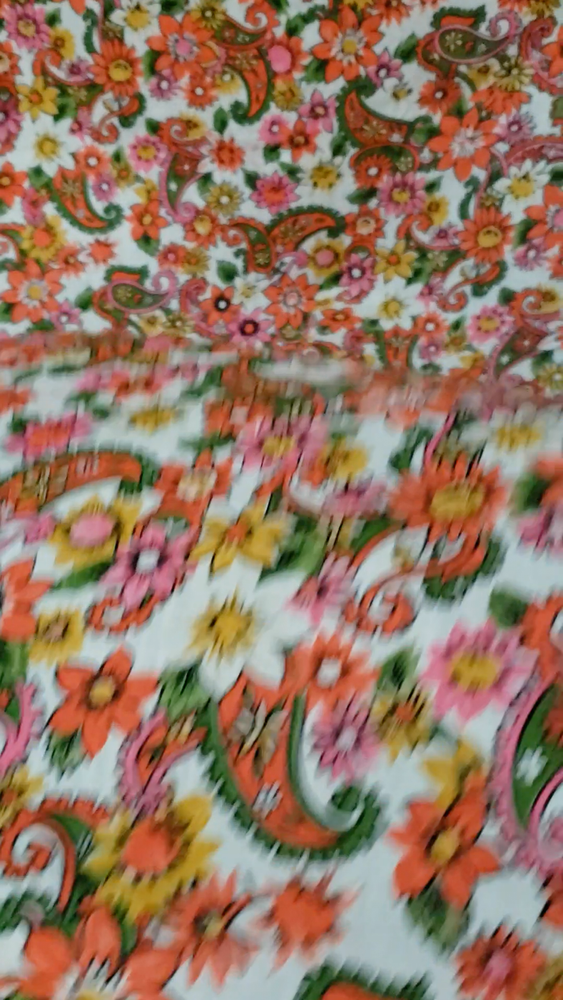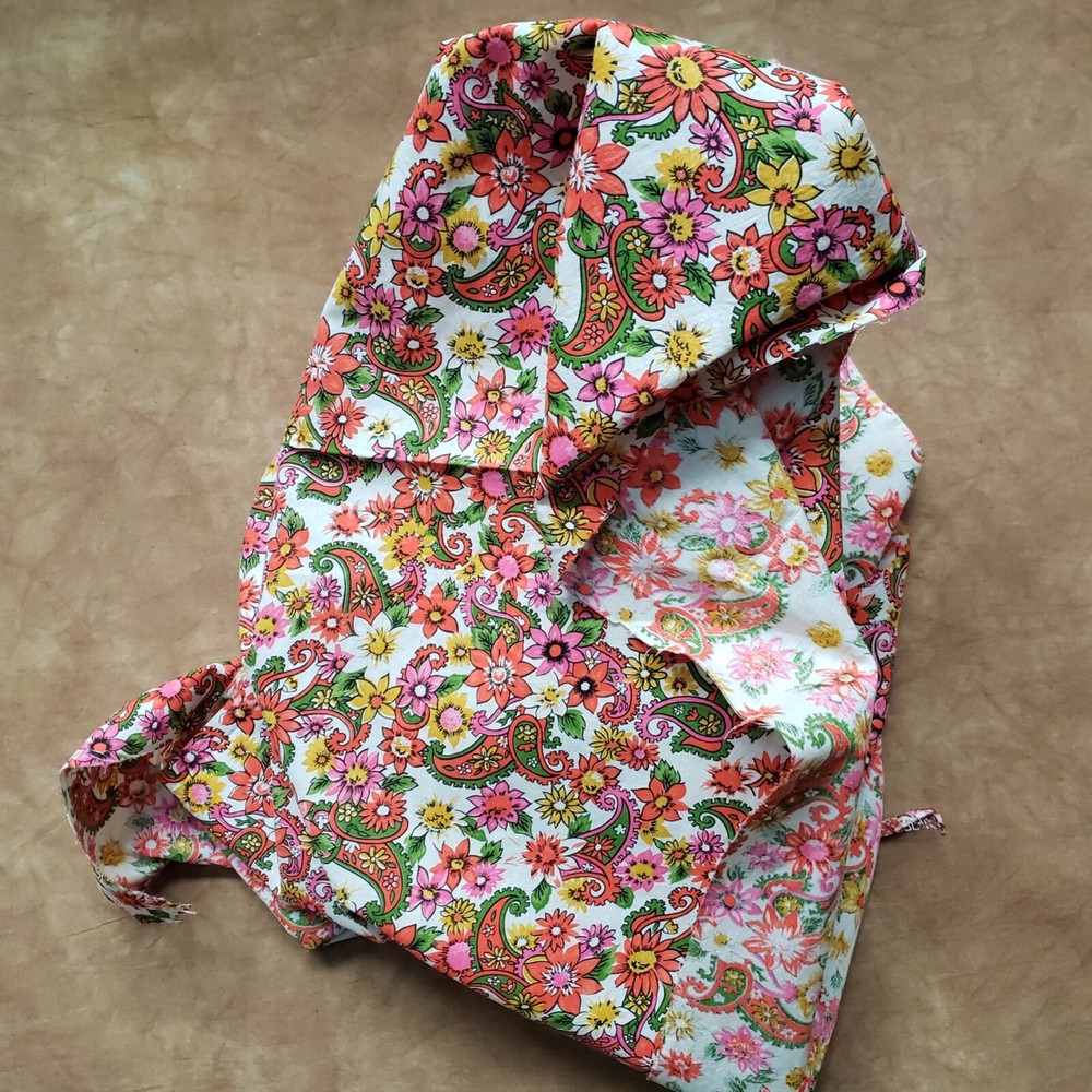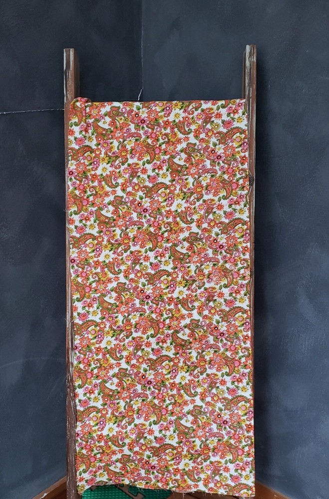 Vintage mid-century lightweight cotton fabric remnant, 17" X 86" in excellent condition. This is a long, narrow piece of fabric, no flaws that I can find, no evidence that it was used previously. The pattern is a colorful floral and paisley print, the retro design reminds me of my fabrics from the 40s and 50s. This is from an old seamstress stash. It would make amazing additions to patchwork creations, up-cycled clothing, apron/apron dress or top, short curtains, etc. 17" X 86"