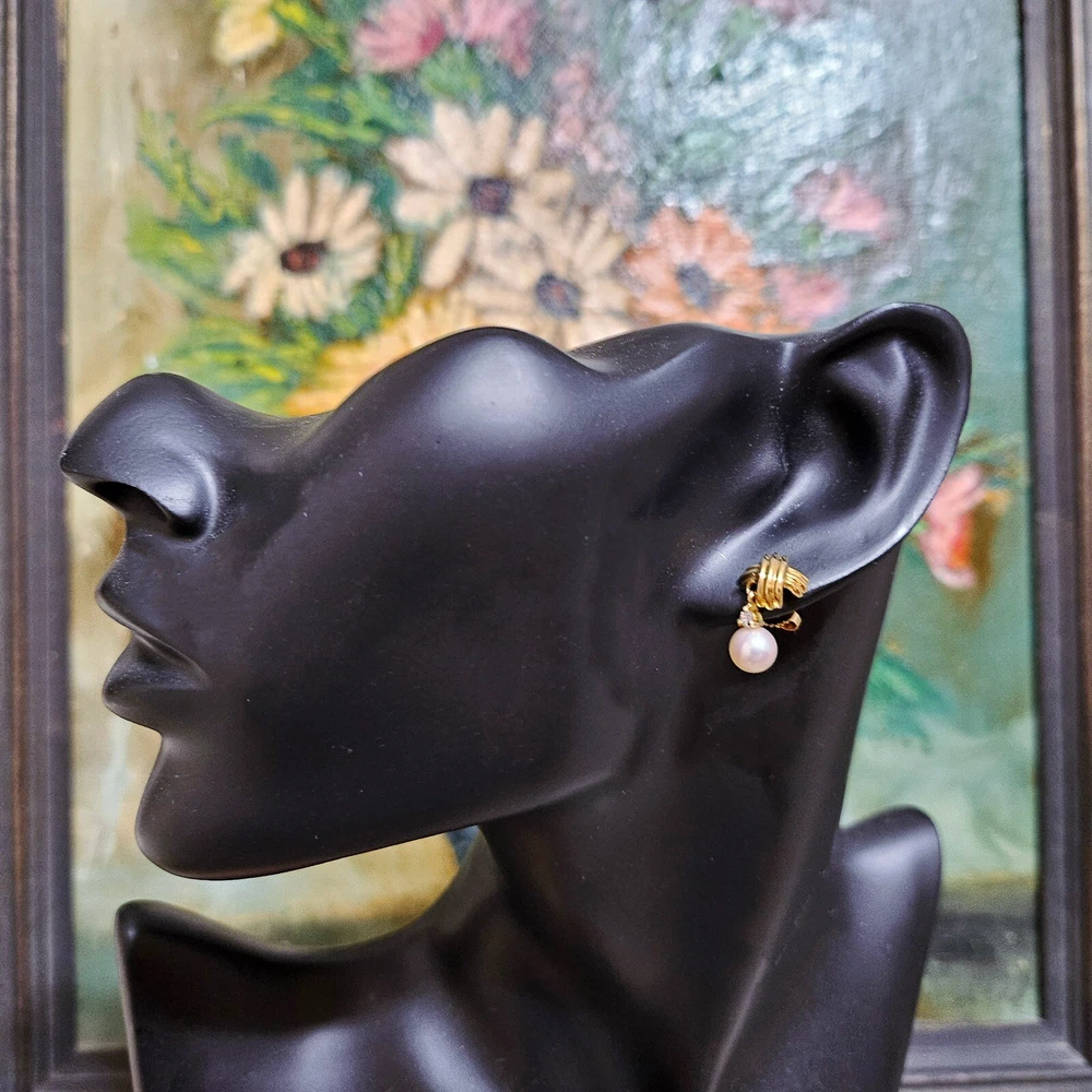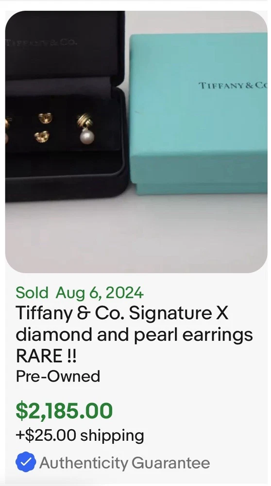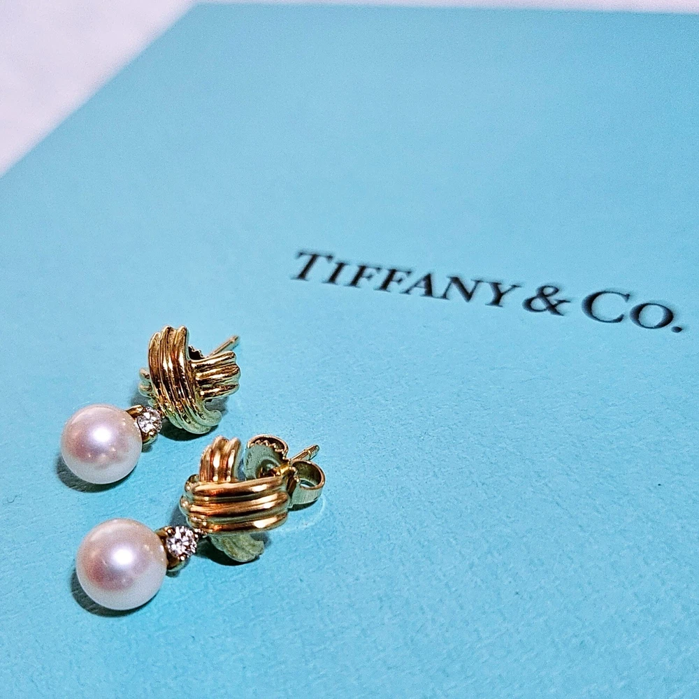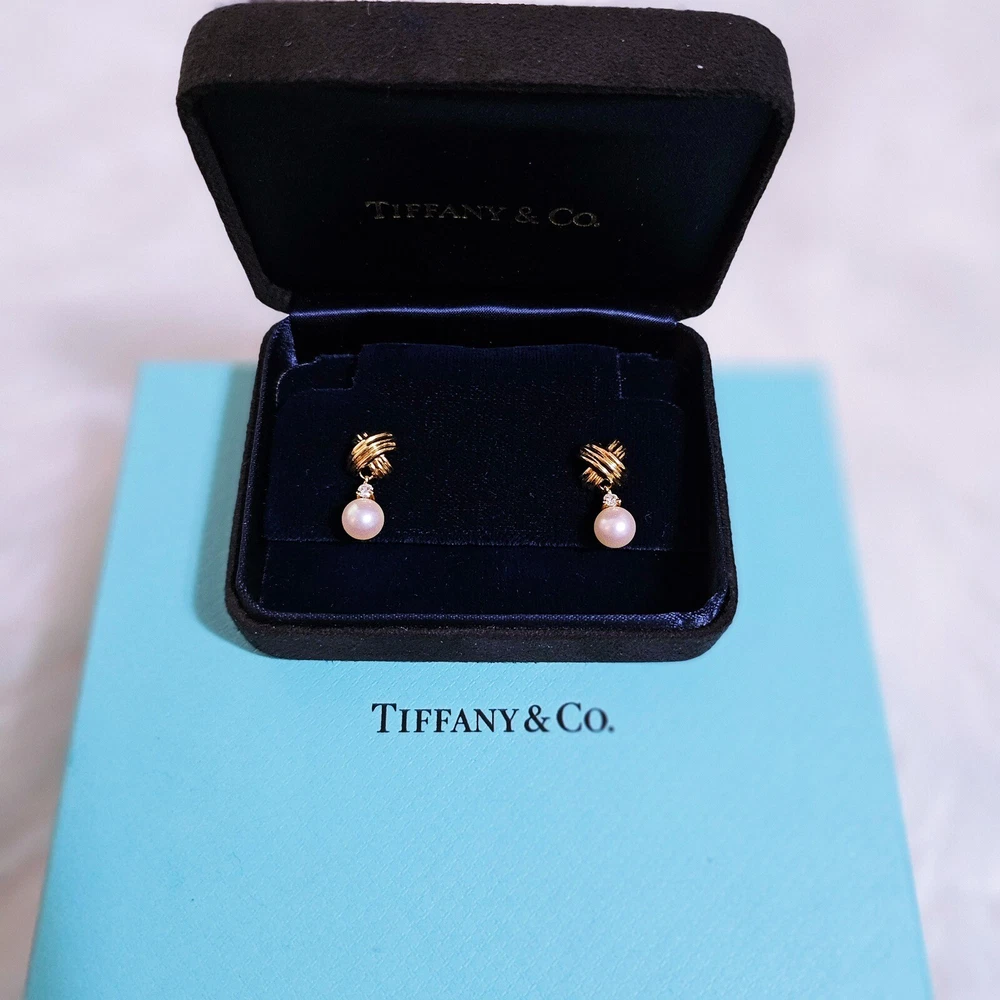 🩵FLASH SALE🩵 Indulge in a piece of history with these vintage Tiffany & Co. “Signature X” Pearl Diamond Dangle Earrings. More beautiful in person. The identical earrings were just sold for $2200. 18k yellow gold. Dimension of the “X”: 0.45” Length of the earrings from top to bottom: 0.75” In very good condition. May have light scratches on metal from normal wear. Pearls are in perfect condition. Comes with black velvet box as showed. ʕ•ᴥ•ʔ✿ NOTE: I've been a Tiffany lover and collector since 2018. I truly enjoy sharing beautiful, authentic Tiffany & Co. items with others and to support my “blue box” passion. All sales are final, and no returns are accepted for any reason. If a return is requested, a 20% restocking fee will apply. I ensure each item is exactly as described and shown in the photos, so please take a moment to read the descriptions and review the photos carefully. I also record a video before shipping to guarantee everything is in perfect order. ♡ 5-⭐️star rating would be much appreciated! Please ask me if you have any questions before purchase. Thank you!