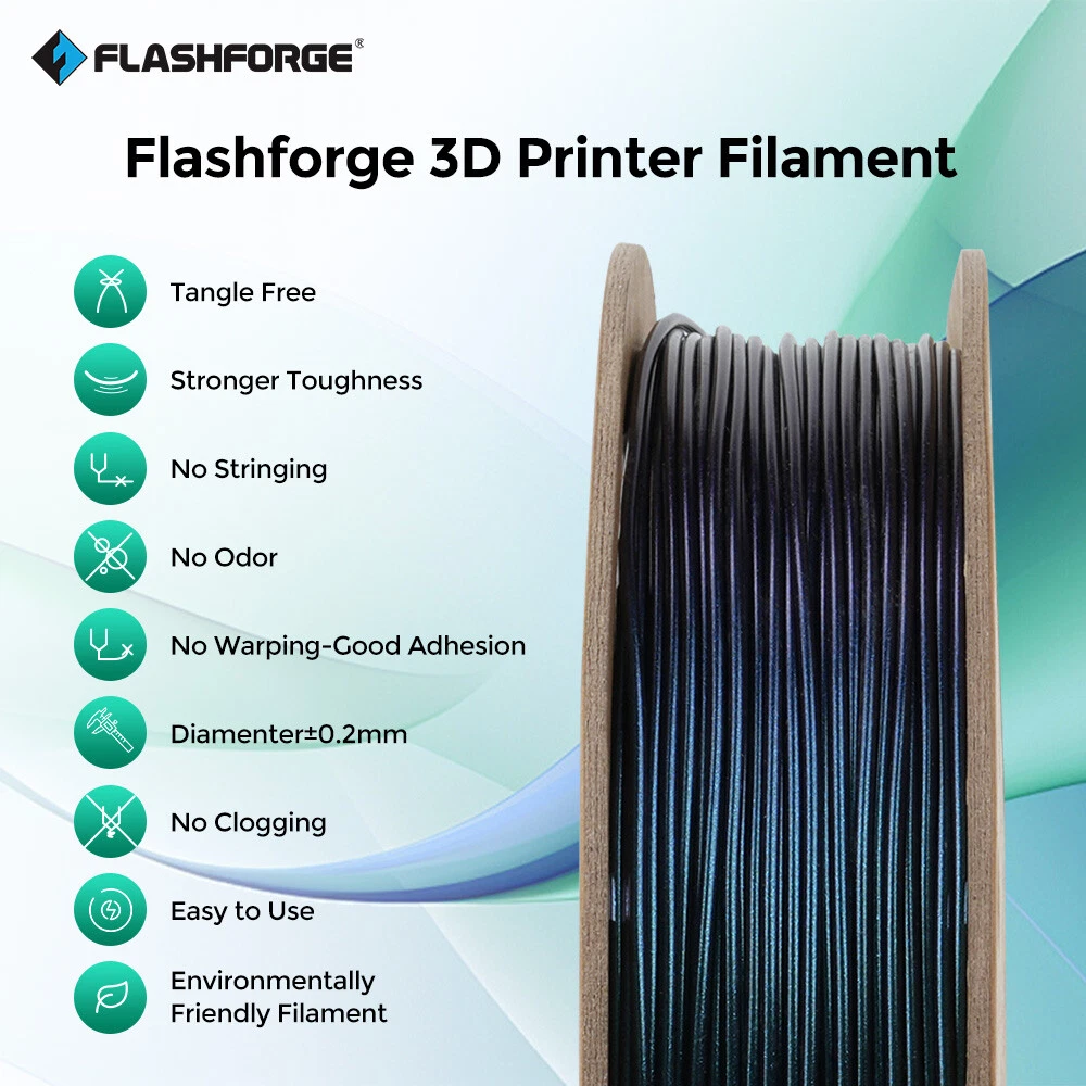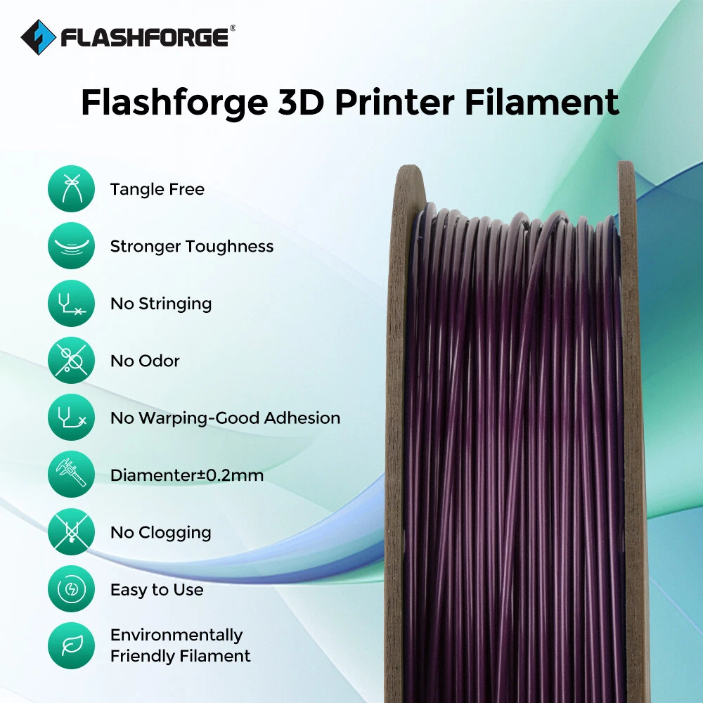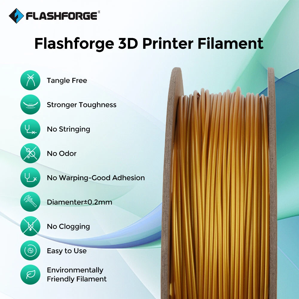 FLASHFORGE PLA+ PEGT+ Silk PLA ASA ABS Pro Filament 1.75mm 3D Printer Filament Description: Package Include: 1 X Filament (Roll) Payment Shipping Returns About us Contact us Payment 1.We accept Paypal,Google Pay,CreditCard,Visa,MasterCard,etc. 2.Payment must be within 8 days after you ordered the item. 3.Make sure you select the correct Postal address when paying for this item. 4.We are not responsible for Import duties, taxes and charges. Shipping Shipping Day are Monday to Friday, excluding Saturday, Sunday and Holiday declared by the carrier. Your order will be ship out within 1-3 business days. Please ensure your shipping address is correct before ordering. We are not responsible for undeliverable address. We reserve the right to charge the shipping fee again for returned items due to wrong address. Returns 1.We offer 30 days return policy. Please contact us within 30 days from the date you receive your order if you have any issues with the product and would like to return. 2.All returned items MUST BE in the original packaging and you MUST PROVIDE us with the shipping tracking number, specific reason for the return, and your eBay ID. 3.We will refund YOUR FULL WINNING BID AMOUNT, upon receipt of the item in its original condition and packaging with all components and accessories included, AFTER BOTH Buyer and Seller cancel the transaction from eBay. OR, you may choose to have a replacement 4.Buyer is responsible for return shipping cost. About us Established in 2011, FLASHFORGE is one of the first professional 3D printing equipment and materials R&D and manufacturing enterprises in China. At present it is the domestic first, ranking third in consumer-level 3D printing brand manufacturers globally. (Data source 3D Hubs). And, Flashforge was awarded the title of "Famous brand in Zhejiang Province" in 2017. As an R&D and manufacturing enterprise providing products and solutions for the whole industrial chain, Flashforge presently owns 10 product categories, extending from 3D printers, 3D printing filament, and 3D designing software to 3D printing services, providing dozens of types of products, covering the complete industrial chain. Products are divided into three levels: industry level, commercial level, and civil level, meeting the needs of different types of users. Meanwhile, Flashforge is at the industry-leading level in technology R&D, channel construction, after-sales service, and other aspects. Contact us All eBay messages will be replied within 24 hours or sooner during working days. Your satisfaction is our priority. If you have any questions about the products, please feel no hesitation to contact us, we will try our best to solve them. Looking forward to your messages!
