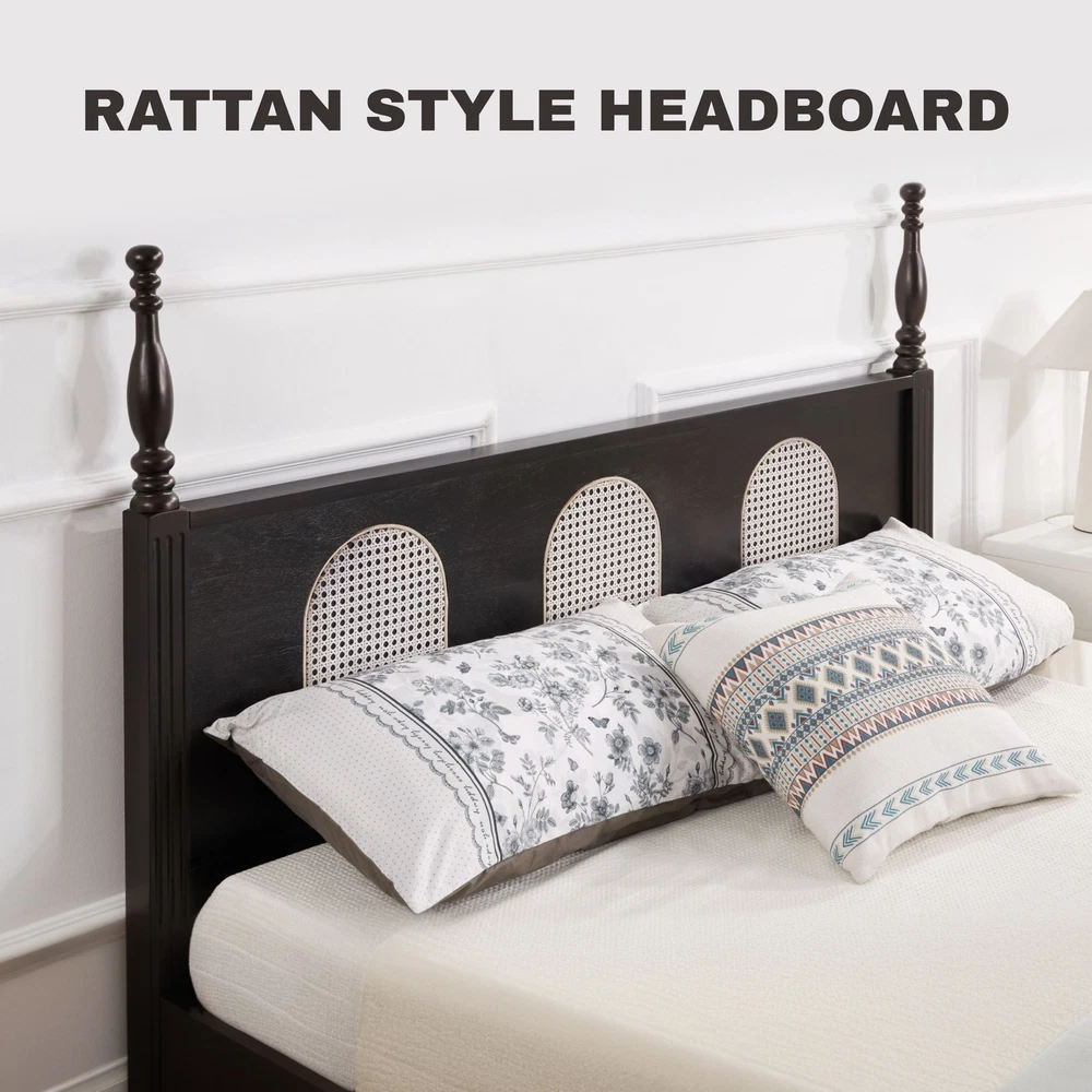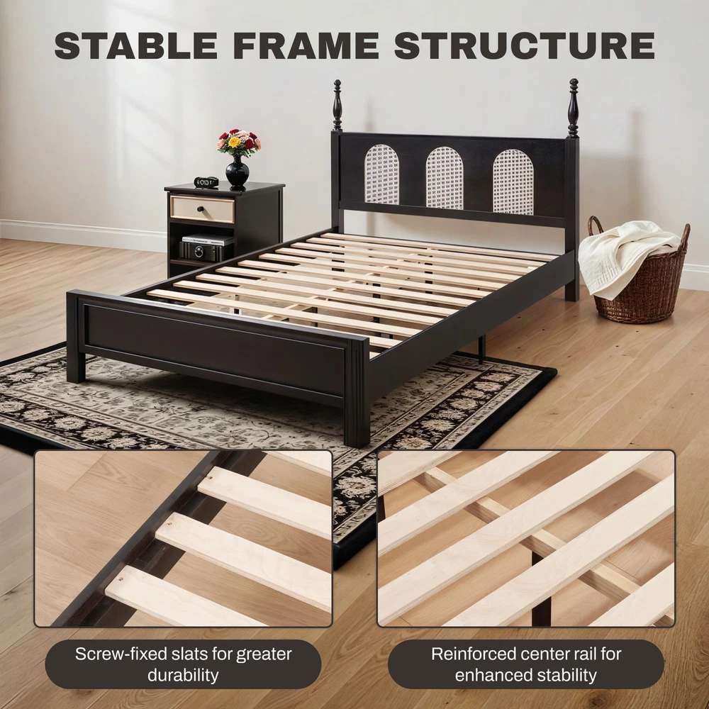 Home Payment Shipping Return Policy About Us Contact Us Feedback Title Other Standing Desk Desk Riser & Desk Converters Desk Bike Ergonomic Office Chair Fitness FunniHommi Adjustable Bed Frame Base Queen Size with Upgrated Quite Durable Moto Upgrade your bedroom with a complete sleep solution that combines durability, style, and comfort. FlexiSpot mid-century rattan bed frame adds a cozy natural touch while the solid wood structure ensures long-lasting strength. Paired with a cooling bamboo viscose gel memory foam mattress, this set offers pressure relief, orthopedic support, and fresh, breathable sleep all night long. Product Highlights: Solid Wood Frame with Rattan Headboard — Style & Stability Premium solid wood legs, screw-fixed slats, reinforced center rail, and a raised footboard keep your mattress securely in place. Mid-century rattan design adds natural texture and timeless charm to any bedroom decor. Cooling Gel Memory Foam + Bamboo Viscose Cover Stay cool and dry with gel-infused foam for temperature regulation, bamboo viscose for breathability, and green tea extract for freshness—ideal for hot sleepers and year-round comfort. Five-Layer Pressure Relief System — Adapts to Your Body 6-layer foam construction provides medium-firm support, spinal alignment, and motion isolation so couples can sleep undisturbed. Suitable for back, side, and stomach sleepers. Fits Most Bed Types — 4 Thickness Options Compatible with slatted frames, box springs, platform beds, foundations, bunk beds, or directly on the floor. Choose from 6'', 8'', 10'' or 12'' mattress thickness options to match comfort preference and room style. Certified Safe & Easy Setup — No Box Spring Needed Mattress meets CertiPUR-US® & OEKO-TEX® standards, low-VOC and skin-friendly. Bed frame offers spacious under-bed storage, mattress ships compressed in a box and expands quickly. Specifications: Included Items: Bed Frame + Mattress Bed: Bed Size: Queen Under-Bed Clearance: 6'' Assembled Product Depth: 78.7'' Assembled Product Height: 51.2'' Assembled Product Width: 63'' Headboard Height: 38'' Headboard Width: 63'' Maximum Weight Capacity: 1100 lbs Footboard: Elevated Footboard Assembly Required: Yes Mattress: Mattress Size: Queen Mattress Thickness Options: 6''/8''/10''/12'' Mattress Firmness: Medium Firm Number of Layers: 6 Mattress Certs: CertiPUR-US, OEKO-TEX Packages Ships in Multiple Boxes — Arrive Separately
