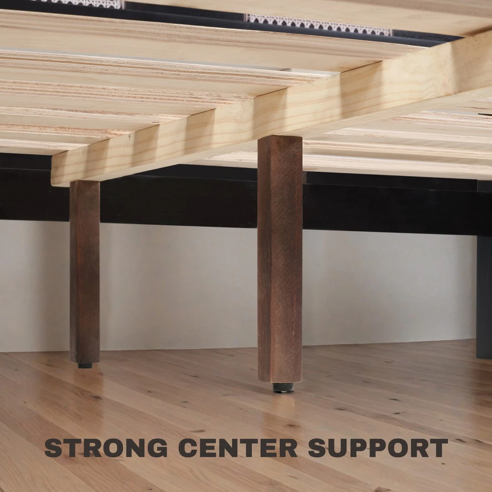 FLEXISPOT Queen Mid-Century Solid Wood Bed Frame w/ Gel Memory Foam Mattress