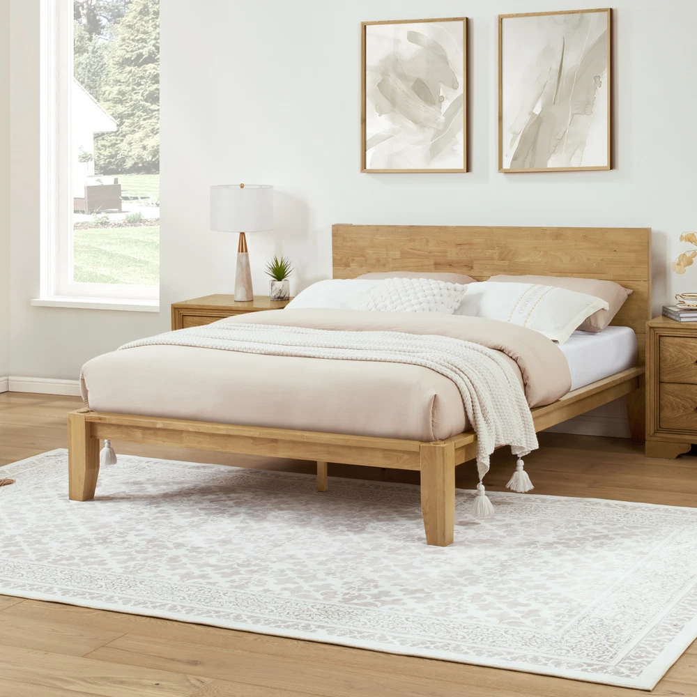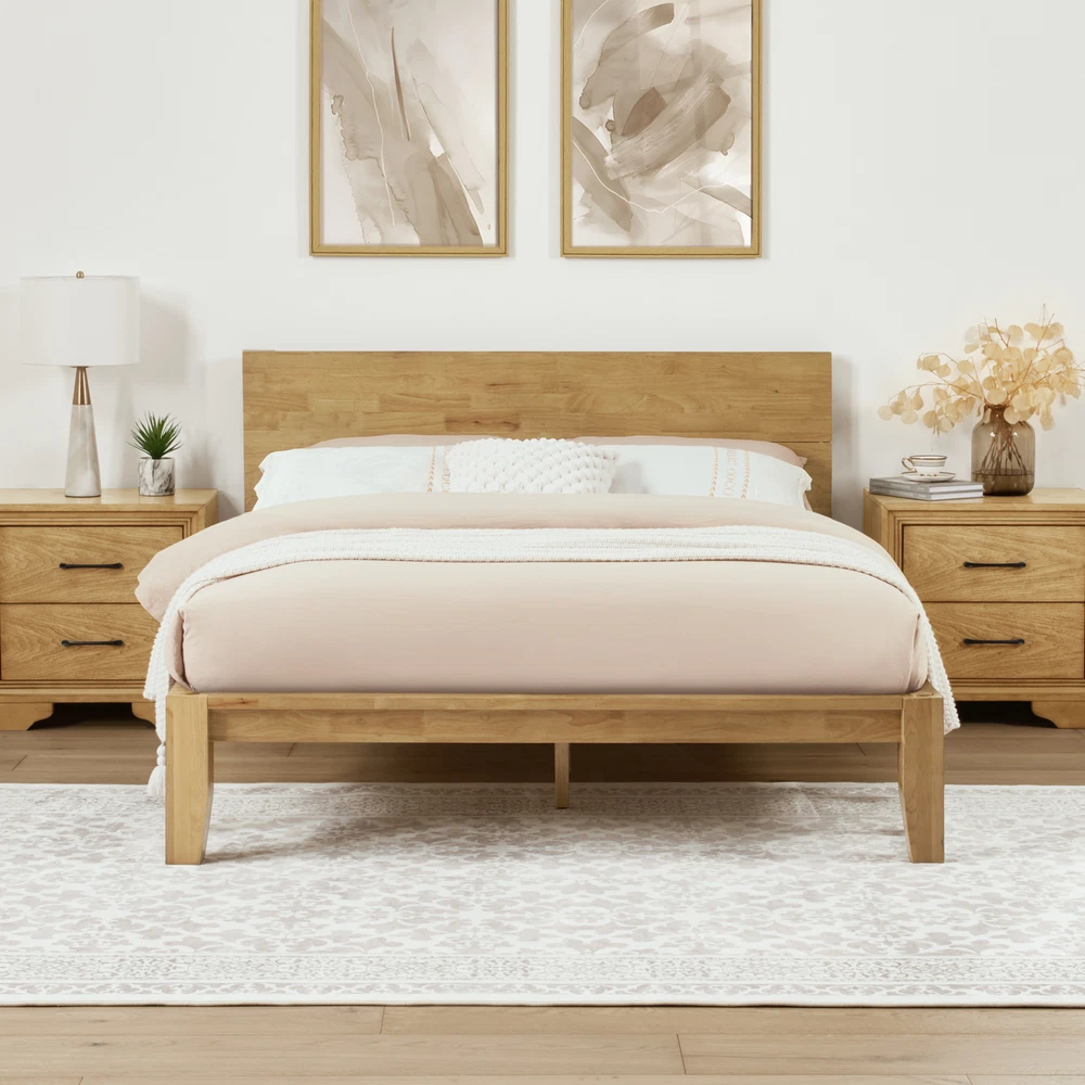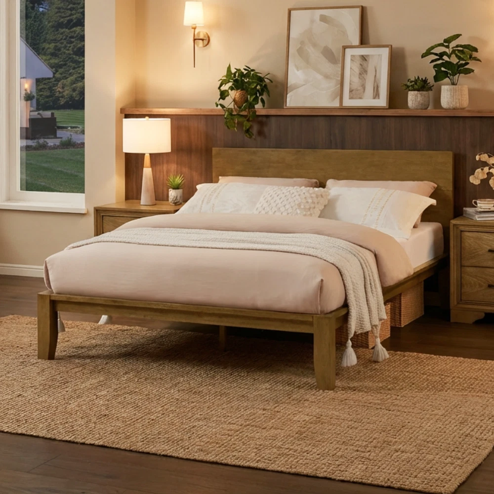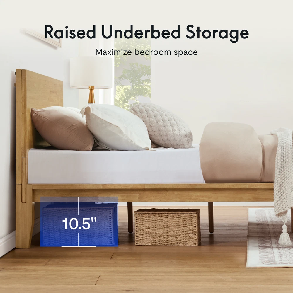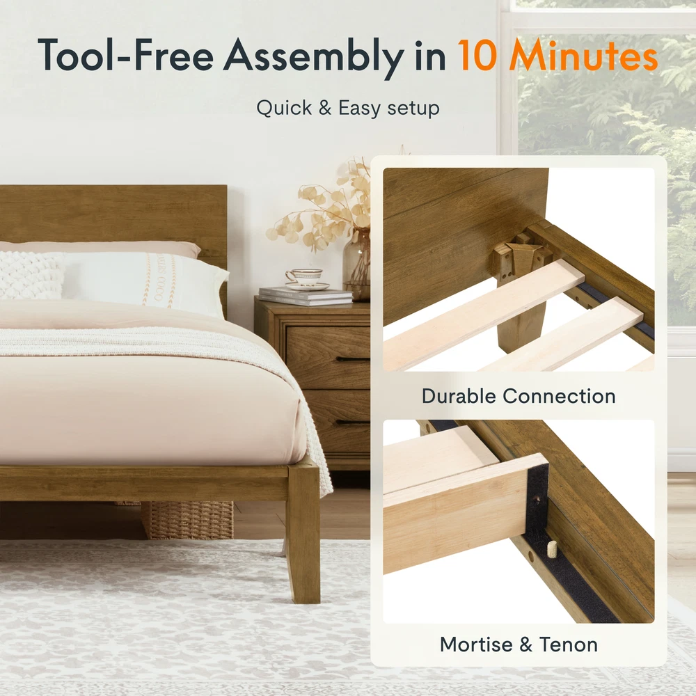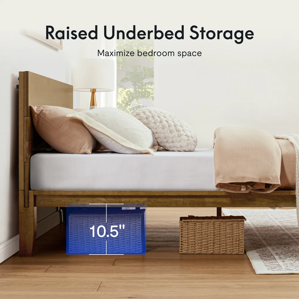 Home Payment Shipping Return Policy About Us Contact Us Feedback Title Other Standing Desk Desk Riser & Desk Converters Desk Bike Ergonomic Office Chair Fitness FLEXISPOT Massage Zero Clearance Adjustable Bed Frame Base with Wireless Remote FlexiSpot solid wood platform bed frame features traditional Japanese mortise-and-tenon joinery for strong, stable support with fast, tool-free assembly in as little as 10 minutes. Crafted from durable solid wood with a moisture-resistant, eco-friendly finish, it offers a quiet, wobble-free design with up to 1200 lbs weight capacity. The hidden headboard shelf keeps essentials organized, while built-in USB-A and USB-C charging ports add everyday convenience. With 10.5” under-bed storage clearance and a clean, timeless look, this wooden bed frame fits seamlessly into modern, farmhouse, or traditional bedrooms. Built with Japanese Joinery Traditional mortise-and-tenon Japanese joinery creates a strong, stable platform bed frame while allowing fast, tool-free assembly in as little as 10 minutes. Easy to disassemble and reassemble for moving or room changes. Integrated USB Charging Headboard The built-in USB charging ports in the headboard keep phones, tablets, and other devices powered overnight. Cords stay neatly hidden, with everything you need within arm’s reach. Under-Bed & Hidden Storage Space Maximize storage with generous under-bed clearance plus a concealed headboard shelf, perfect for books, glasses, or daily essentials—keeping your bedroom organized and clutter-free. Premium Solid Wood Construction Crafted from durable solid wood with an eco-friendly finish that resists moisture and mold. This solid wood platform bed offers long-lasting beauty that fits modern, minimalist, or traditional bedrooms. Quiet, Stable & No Box Spring Needed Strong wooden slats and reinforced center support legs reduce motion, prevent wobbling, and eliminate squeaks—providing quiet, restful sleep. No box spring required. Timeless Japanese-Inspired Bedroom Style Warm natural wood tones and clean lines create a refined, calming look. This Japanese-style platform bed frame serves as a stylish centerpiece for any bedroom. Specifications: Color: Maple/Walnut Weight Capacity: 1200 lbs Interior Width: 60'' W/76''W Overall Width: 64.6'' W/80.6''W Interior Length: 80.3'' L/80.3''L Overall Length: 84.6'' L/84.6''L Overall Product Weight: 83.78 lbs/92.59 lbs Leg Height - Top to Bottom: 14'' H Clearance - Floor to Bottom: 10.5'' H Product Type: Bed Frame Central Support Leg: Yes Material: Solid Wood Mattress Included: No Wood Species: Oak Assembly Required: Yes(Tool Free Assembly) Product Warranty: Yes