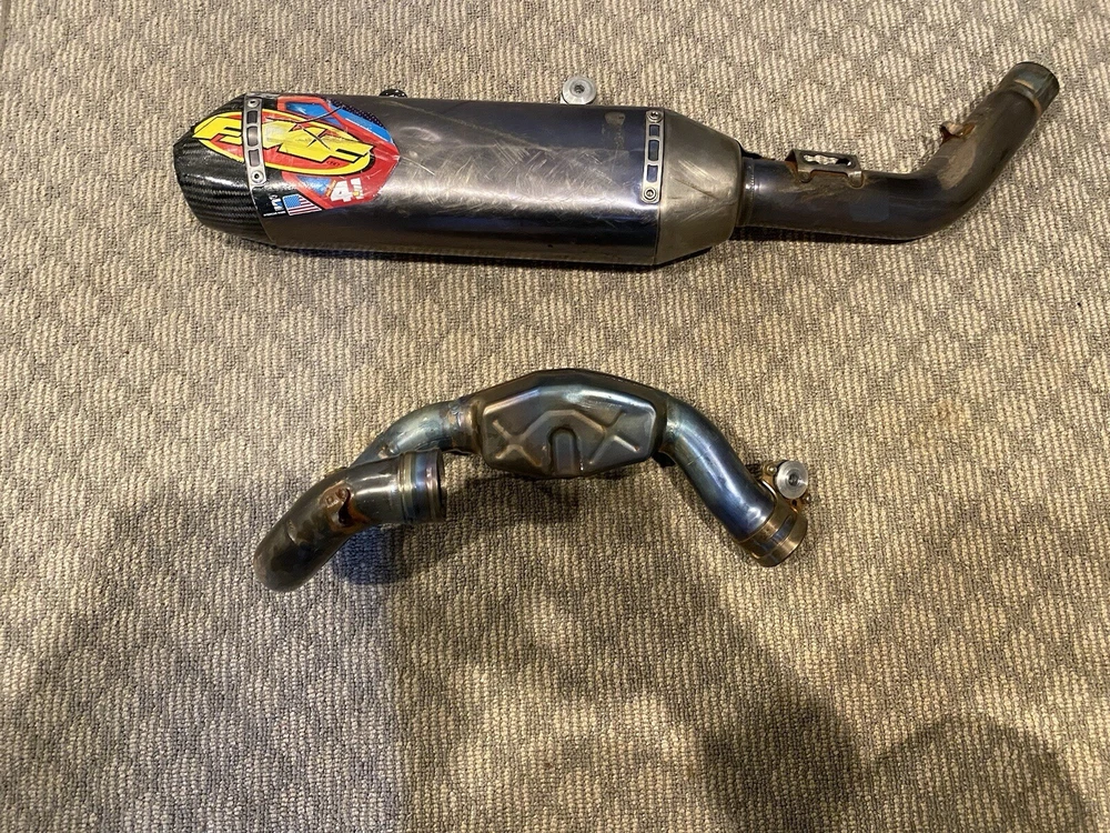 FMF FACTORY 4.1 TITANIUM FULL EXHAUST Exhaust is in great shape. A few small dents on header as pictured. Fits: 19-22 Husqvarna 250-350 19-22 KTM 250-350 21-23 GAS GAS 250-350 Does not include grommets