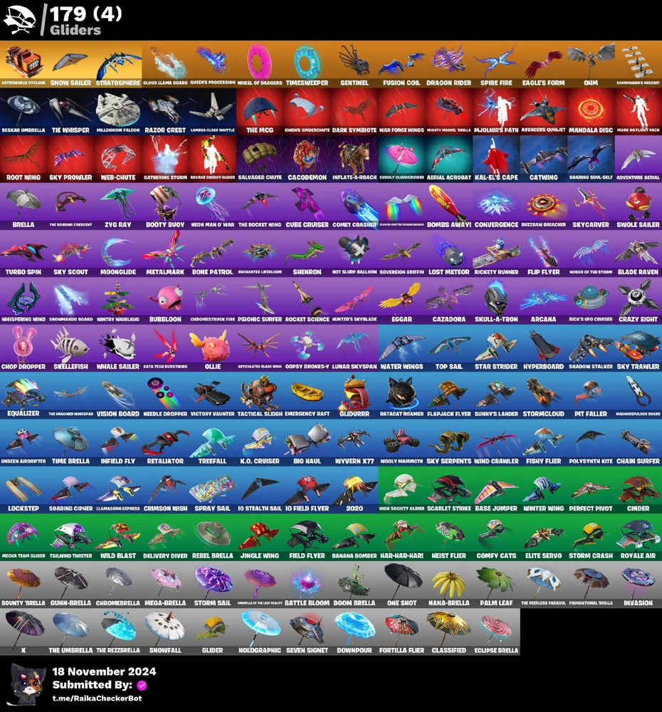 🎮FN Lara Croft, Midas,Spider-Gwen, Carnage.Clark, Rick, Naruto 179 Skins✅
