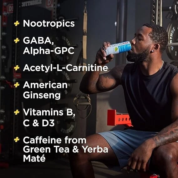Focus aid is a great clean energy choice. It has all of the good stuff and none of the junk—never any artificial flavors, sweeteners or sodium and only 40 calories per can. With 100mg of Natural Caffeine from Yerba Mate, Green Tea and B-Complex, you can stay in the zone. Every can contains clean, high-quality supplements including nootropics, GABA, Alpha-GPC, American Ginseng & Rhodiola rosea. Meet your new favorite go-to energy supplement, providing a better way to drink—grab a focus aid! Best served chilled at 40 Degrees Fahrenheit or 4 Degrees Celsius
