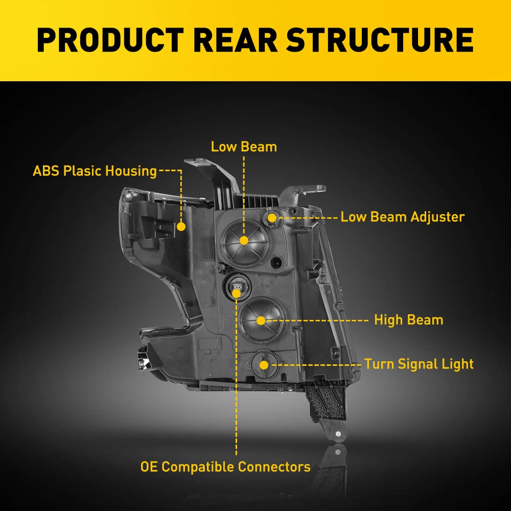 Headlights Headlamps Fit For 2015-2020 Chevy etc. Fit for: 2015-2020 Chevy Tahoe 2015-2020 Chevy Suburban 2016-2019 Chevy Suburban 3500HD (Fit Models With Halogen Headlights Only) Specifications: OE number: 23490005,GM2502405 Material: ABS+PC (ABS Plastic Housing/Polycarbonate lens) Appearance color: 1.Housing Color: Black 2.Lens Color:Clear 3.Reflector Color:Amber The bulb type of original car: 1.Low beam: H7 2.High beam: 9005 3.Turn signal light:7440A Note: Projector √(Include) DRL √ (Include) FOR 15-20 CHEVY TAHOE SUBURBAN LED BLACK CORNER DRL PROJECTOR HEADLIGHT Left 1X Headlights Headlamps Fit For 2015-2020 Chevy etc. Fit for: 2015-2020 Chevy Tahoe 2015-2020 Chevy Suburban 2016-2019 Chevy Suburban 3500HD (Fit Models With Halogen Headlights Only) Specifications: OE number: 23490005,GM2502405 Material: ABS+PC (ABS Plastic Housing/Polycarbonate lens) Appearance color: 1.Housing Color: Black 2.Lens Color:Clear 3.Reflector Color:Amber The bulb type of original car: 1.Low beam: H7 2.High beam: 9005 3.Turn signal light:7440A Note: Projector √(Include) DRL √ (Include) Bulb × (Not include) Features: *Easy to install: Direct replacement, drilling and cutting are not required. *Superior quality: Made of ABS and PC materials with toughness and heat resistance functions to ensure its long service life and durability. *Angle adjustment: Equipped with a headlamp Angle adjustment knob, you can adjust the best Angle of view through the knob. *Suggestion: 1.Please confirm the OE number before purchasing!!! 2.Professional installation is required!!! Packaging include: Headlights*1(Left) Item Specifics Brand AUXITO Number of Bulbs / Lighting Technology / Type Headlight Assembly Features DOT-Certified, SAE-Certified, Sealed Assembly Housing Color Black Placement on Vehicle Front,Left Reflector Color Amber Lens Color Clear OE/OEM Part Number 23490005,GM2502405 Material ABS PC Manufacturer Warranty 1 Year Universal Fitment Yes Fitment 1 for 2015-2020 Chevy Tahoe Fitment 2 for 2015-2020 Chevy Suburban Fitment 3 for 2016-2019 Chevy Suburban 3500HD Attention Fit Models With Halogen Headlights Only Fitment Type Direct Replacement Certifications DOT, SAE High Beam 9005 Low Beam H7 Turn Signal Light 7440A Payment Returns DESCRIPTION PAYMENT SHIPPING RETURN POLICY CONTACT US Shop Category Store Home LED Headlight ◈ H4 ◈ H13 LED Reverse Light ◈ T15/921/W16W LED License Plate Light LED Side Marker Light Car Parts & Accessories Tail Light assemblies Other Hot Item Picture New List Item Fit For 2004-2008 Acura TL 4PCS Smoked + Rear Front White LED Side Marker Lights USD 33.99 LH&RH Fit2006-2009 Dodge Ram 1500 2500 3500 w/Black Bezel Headlights Set 06-09 USD 85.99 04-12 For Canyon Red Chevy Colorado/GMC Clear Rear Brake Tail Lights Lamp 1Pair USD 64.19 3156 3157 4157 LED Reverse Backup Light Bulb 6000K Xenon White Bright US 2Set USD 26.99 1157 54-SMD LED Tail Stop Brake Reverse Parking Turn Signal Light 7528 2357 2Set USD 28.29 Help & Info Payment Policy Shipping Policy Return Policy FAQ About Us FOR 15-20 CHEVY TAHOE SUBURBAN LED BLACK CORNER DRL PROJECTOR HEADLIGHT Left 1X Headlights Headlamps Fit For 2015-2020 Chevy etc. Fit for: 2015-2020 Chevy Tahoe 2015-2020 Chevy Suburban 2016-2019 Chevy Suburban 3500HD (Fit Models With Halogen Headlights Only) Specifications: OE number: 23490005,GM2502405 Material: ABS+PC (ABS Plastic Housing/Polycarbonate lens) Appearance color: 1.Housing Color: Black 2.Lens Color:Clear 3.Reflector Color:Amber The bulb type of original car: 1.Low beam: H7 2.High beam: 9005 3.Turn signal light:7440A Note: Projector √(Include) DRL √ (Include) Bulb × (Not include) Features: *Easy to install: Direct replacement, drilling and cutting are not required. *Superior quality: Made of ABS and PC materials with toughness and heat resistance functions to ensure its long service life and durability. *Angle adjustment: Equipped with a headlamp Angle adjustment knob, you can adjust the best Angle of view through the knob. *Suggestion: 1.Please confirm the OE number before purchasing!!! 2.Professional installation is required!!! Packaging include: Headlights*1(Left) Payment Returns All rights reserved. On Dec 17, 2024 at 20:12:51 PST, seller added the following information: