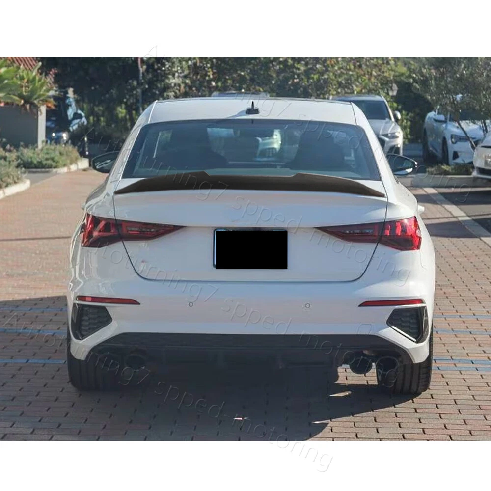 Fitment: Fit For Audi A3 S Line S3 8Y RS3 Sedan 4-Door 2021-2024 Specifications: Product Name: Rear Spoiler Material: Carbon Fiber Package Size: 128*28*11 cm Package Weight: 1.9kg Features: Made of High Quality Lightweight Carbon Fiber. Latest Design GT Wing Spoiler Completed Kit, Improve Handling And Make Tail More Stable in High Speed. Water Transfer Carbon Fiber for Highest Durability and Appearances. Adjustable Angles for Customizable Usages and Efficiencies, Enhances Aerodynamic. Reduces Drag, Increases Fuel Efficiency, Reinforces Downforce, Traction and Stability. Double-sided adhesive paste, Easy to Install. Package included: 1 x Spoiler with self-adhesive glue tape Carbon Fiber Spoiler The Rear Trunk Spoiler is one of the simplest mods you can do to the exterior of your car that will give your car that completely different look. Not only are spoilers meant for great looks, they also help with the aero dynamics of the car by lowering drag, or helping to put more downforce on the car making sure that the wheels stay grounded for maximum traction. Fitment: Fit For Audi A3 S Line S3 8Y RS3 Sedan 4-Door 2021-2024 Specifications: Product Name: Rear Spoiler Material: Carbon Fiber Package Size: 128*28*11 cm Package Weight: 1.9 kg Features: Made of High Quality Lightweight Carbon Fiber. Latest Design GT Wing Spoiler Completed Kit, Improve Handling And Make Tail More Stable in High Speed. Water Transfer Carbon Fiber for Highest Durability and Appearances. Adjustable Angles for Customizable Usages and Efficiencies, Enhances Aerodynamic. Reduces Drag, Increases Fuel Efficiency, Reinforces Downforce, Traction and Stability. Double-sided adhesive paste, Easy to Install. Package included: 1 x Spoiler with self-adhesive glue tape Delivery details Payment and TAX Warranty Policy Return Policy Contact us Delivery details NOTE: The shipping fee is only for the mainland of each country, it does not include the overseas territories, such as Virgin Islands (U.S.) , Puerto Rico, Hawaii , French Reunion Island, etc. But on ebay, when buyers from Puerto Rico and overseas territories , the shipping fee is equal to United States, it is NOT correct,. please contact us for correct shipping fee, or we will cancel the order. Sorry for the inconvenience, and thanks for your cooperation. 1. If you want to upgrade the shipping, please contact us before making payment, we will revise the shipping fee. 2. We will ship according to your Ebay address. Please make sure it is correct and include phone number for delivery. If you want to know the exact shipping time , please contact us . Payment and TAX 1.We accept Multiple Payment Methods Available: Credit Card, Debit Card, Gift Card, Apple Pay, Goggle Pay, PayPal and PayPal Cred. 2.Please leave note for your special request (e.g. Colors or Size) in ebay note when you pay the order. 3.Your must complete the payment within 7 days or Ebay will automatically open unpaid item case For US Buyer:The invoice value of each item is less than 800USD ,so you no need to pay any tariff . NON-US Buyer Note: Most countries are tax free based on our invoices, if tax is required, which will be buyer's responsibility. Warranty Policy We Warranty Our Product Within the Limited Warranty Policy Specified on Ebay. Please Email us if ou have any question regarding the warranty policy on a specific item. Most of the items are Aftermarket Parts and they are intended for off-road usage only, therefore no installation instruction will be included, Professional installation are Highly Recommended. We are not responsible for any damages to the item or the vehicle that occur during the installation of the item.Also, Please Make Sure Proper Installation is Performed as we are not responsible for item being missing or flew off after the installation. if you don't think the item can stay on the car properly, please do not attempt to drive the car with it and please check with professional shops/mechanics or contact us for assistance. Return Policy We Accept Returns Within the Return Period On Ebay. Return Authorization/Return Approval is Required For Every Return. So If you Wish to Make a Return On Your Purchase. Please Contact us Before You Send The item back For any damages occured to the item upon arrival, Please notify us within 5 days of the delivery so we can take proper action to fix the issue. So Please Kindly inspect and check the item condition upon arrival.For Any other Return Inquries, You can contact us within the return period to obtain return authorization/return approval. In case of return, the merchandise needs to be returned in original condition with origi- nal packaging in order to be eligible for an exchange or a refund. Items must be not opened in their original package. Any mark of installation, mounting, cutting, scratch or using will not be allowed. Contact us 1.We are trying our best to explain all details of the products here! If you have any question, please feel free to contact us by Ebay message, and We will get back to you within 24-48 hours. 2.Customer satisfaction is our NO.1 priority. If you are not happy with the item that you purchase, please contact us first. We will try our best to solve the problem with you.Please leave us a positive feedback if you receive the item.Please do not leave negative or neutral feedback without any contact.If you haven't received item in 30 days, please contact us and we will arrange refund.We appreciate your business.Happy Bidding & Have a nice day! 3.Working hours: From 8 a.m. to 6 p.m. from Monday to Friday. From 8 a.m. to 12 a.m. on Saturday morning Holiday/Rest time: Saturday afternoon and Sunday