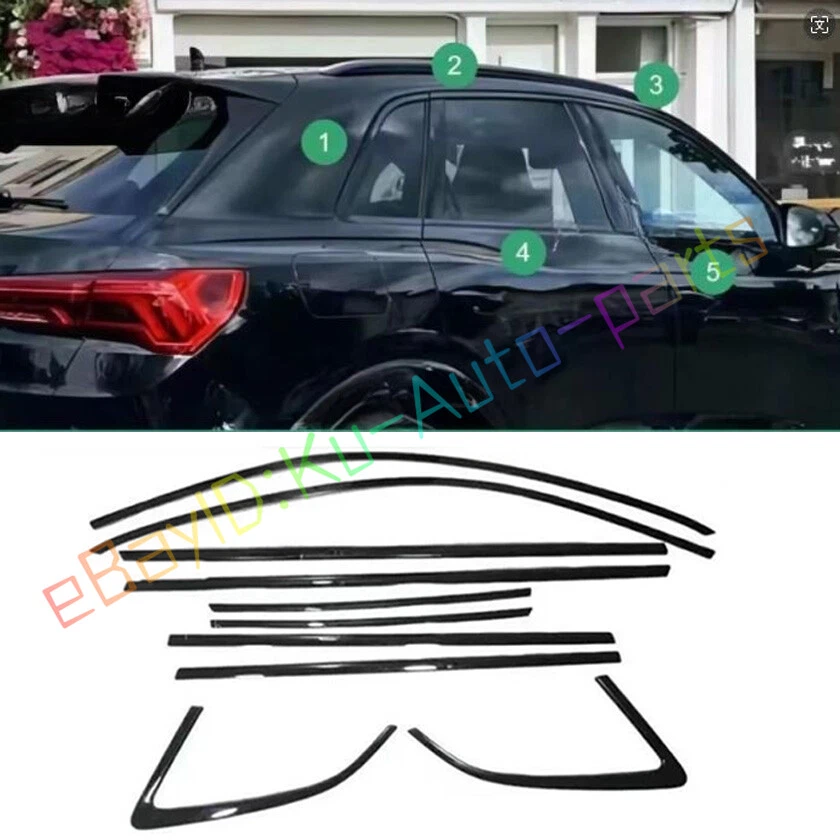 FOR Audi Q3 2019-2022 2023 steel black Windows Sill Molding Strip Trim 10PCS Attention: Because the same model car may be differently produced in different country. Please ensure the part of your car like our picture shows, or it will not fit, if any differences, please contact with us before purchase, thanks! Item Description: FOR Audi Q3 2019-2023 Condition: 100% Brand new (Sold as seen, please ensure suitability carefully before purchase) Color: black Stainless steel Made in an ISO 9001 facility to ensure good quality Package Include: 10 pcs/SET Easy installed and No modification needed, Adhesive tape is attached at the back Method Of Installation: Step 1 Please clean the area and eliminates the substance before mounting this product. Step 2 To check the installation area according to the vehicle with this product first and then release the back of 3M tape paper (double-sided tape, a label) is removed Step 3 Products are equipped on the vehicle with exactly and use a clean cloth to press evenly is attached. Step 4 Products within 24 hours after installed, please avoid washing your car and touching the water. Tips: If you not familar with DIY, please ask professional for help. Sub-zero weather during the winter, the adhesion 3M tape adhesion is getting weak .You could heat the place of 3M tape with a heat gun