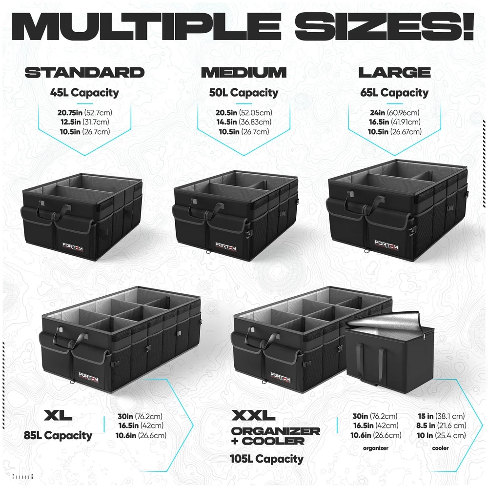 FORTEM Car Trunk Organizer, Collapsible Multi Compartment Car Organizer, Sturdy Box Design – premium trunk storage organizer for car is reinforced with rigid base plates to support every side panel. Among car organizers and storage, ours will leave less mess to worry about with multiple side pockets and up to 3 compartments. Stays in Place – Our car trunk storage organizer has non-slip strips to prevent sliding and adjustable straps to secure to your trunk. Store small items in the tight mesh siding or pockets with lids. You can even connect 2 or more car organizers with interlocking buckles. Multifunctional – Trunk organizers and storage make car organization easy and simple. Organize a variety of products from groceries to office supplies, accessories (handbags, shoes,) or toys for kids. Consolidate the mess in your trunk and make room for your cooler or camp gear. Collapsible with Removable Lid – You can move trunk storage to the backseat, front seat, or center of your vehicle since it is collapsible to 1 compartment. The detachable lid keeps your goods out of sight for added security. One Year Warranty – No matter if it’s a large truck, SUV or sedan, this car tote is perfect for any size trunk. Your car storage trunk organizer is covered for a full year! Imagine a perfectly organized vehicle where everything has its place and you never have to scramble around a messy car looking for a lost cellphone, baby toy, dog leash, magazine, etc. Sound amazing? Well, thanks to our AUTO TRUNK ORGANIZER, this can be your reality! So, what are you waiting for? Buy the AUTO TRUNK ORGANIZER today and say goodbye to your messy vehicle! Durable and sturdy sidewalls, base plates, and dividers give the cargo organizer its rugged, rigid shape Three roomy compartments for storing tools, cleaning supplies, groceries, sporting goods, emergency gear...whatever you need storing! Numerous side pockets allow you to secure small electronics, maps, books, magazines, gloves, small tools and hardware Large grab and go carry handles make it easy to move the trunk organizer to and from your vehicle Fits great in the backseat, as well as in the boot of almost any car, SUV, truck, van, etc. Specifications Condition: New, in retail packaging Package Includes: One Trunk Cargo Organizer with base plates and divider, 2 Securing straps & 1 Bonus microfiber towel Extended Size(approx.): L 22.15inch x W 16.00inch x H 10.50inch (56cm x 41cm x 27cm) Color: Black 2 Durable Carrying Handles Non Slip Bottom Shipping We offer FREE shipping on all orders! We ship within Three business days of payment, usually sooner. We use a selection of shipping services such as UPS, FedEx, USPS etc. We only ship to the lower 48 states, no APO/FPO addresses or PO Boxes allowed. Local pickups and combined shipping options are not provided at this time. Return You can return a product for up to 30 days from the date you purchased it. Any product you return must be in the same condition you received it and in the original packaging. Please keep the receipt. Payment We accept payment by any of the following methods: PayPal Please pay as soon as possible after winning an auction, as that will allow us to post your item to you sooner! Feedback Customer satisfaction is very important to us. If you have any problem with your order, please contact us and we will do our best to make you satisfied. Contact Us If you have any queries, please contact us via ebay. We usually respond within 24 hours on weekdays. Please visit our eBay store to check out other items for sale! Thank you for shopping at our store.