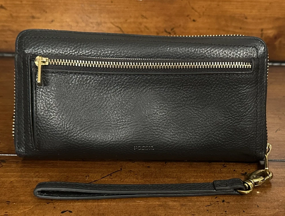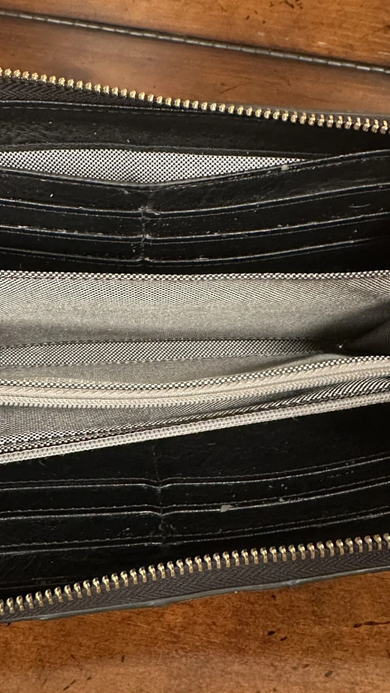 This leather clutch features RFID SFETY, 12 credit cards, slots an interior zip pocket, to bill compartments, 3 gusseted pockets, and a detachable wristlet strap. this is the perfect combination of unique and sleek just the right amount of cards, slots, coin sections, and open areas for notes, stamps, and receipts. It goes with everything! The colors are quirky, which is fun to see an easy to distinguish from other wallets. This clutch can fit up to an iPhone 14 Pro Max and Samsung Galaxy S 22 ultra. The interior material is 100% polyester, polyurethane. It has a great zipper that works smoothly & a detachable wristlet strap with a lobster clasp in a bronze gold color. The exterior material is made out of leather polyurethane and suede trims.