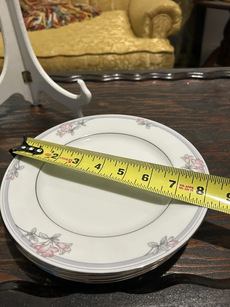 Add a touch of contemporary elegance to your dining table with this set of four Noritake Tarkington 3695 salad plates. Crafted from high-quality porcelain with a glossy finish, these plates feature a beautiful floral theme in shades of pink and gray, complemented by silver trim. Measuring 8 1/4 inches in diameter, they are perfect for all occasions, from casual family dinners to formal events. Hand wash only and made with traditional pottery techniques in Sri Lanka, these plates bear a printed backstamp and are an original, licensed reproduction from Noritake's legendary product line. Ideal for collectors and those who appreciate fine dining, these plates are a must-have addition to any table setting.