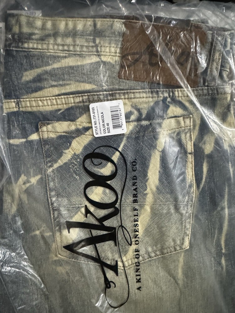 Department:MenModel:A&G FarrahPattern:SolidVintage:YesClosure:Zip, BuckleStyle:StraightAccents:LogoType:JeansRise:Mid (10-12 in)Material:CottonFabric Type:DenimFabric Wash:LightProduct Line:AG The ProtégéBrand:AKOOFeatures:Beltedgtin13:Does not applySize:40Inseam:31 inCountry/Region of Manufacture:UnknownTheme:Hip Hop, LogoSize Type:RegularUPC:Does not applyFit:RegularColor:BlueWaist Size:40 in