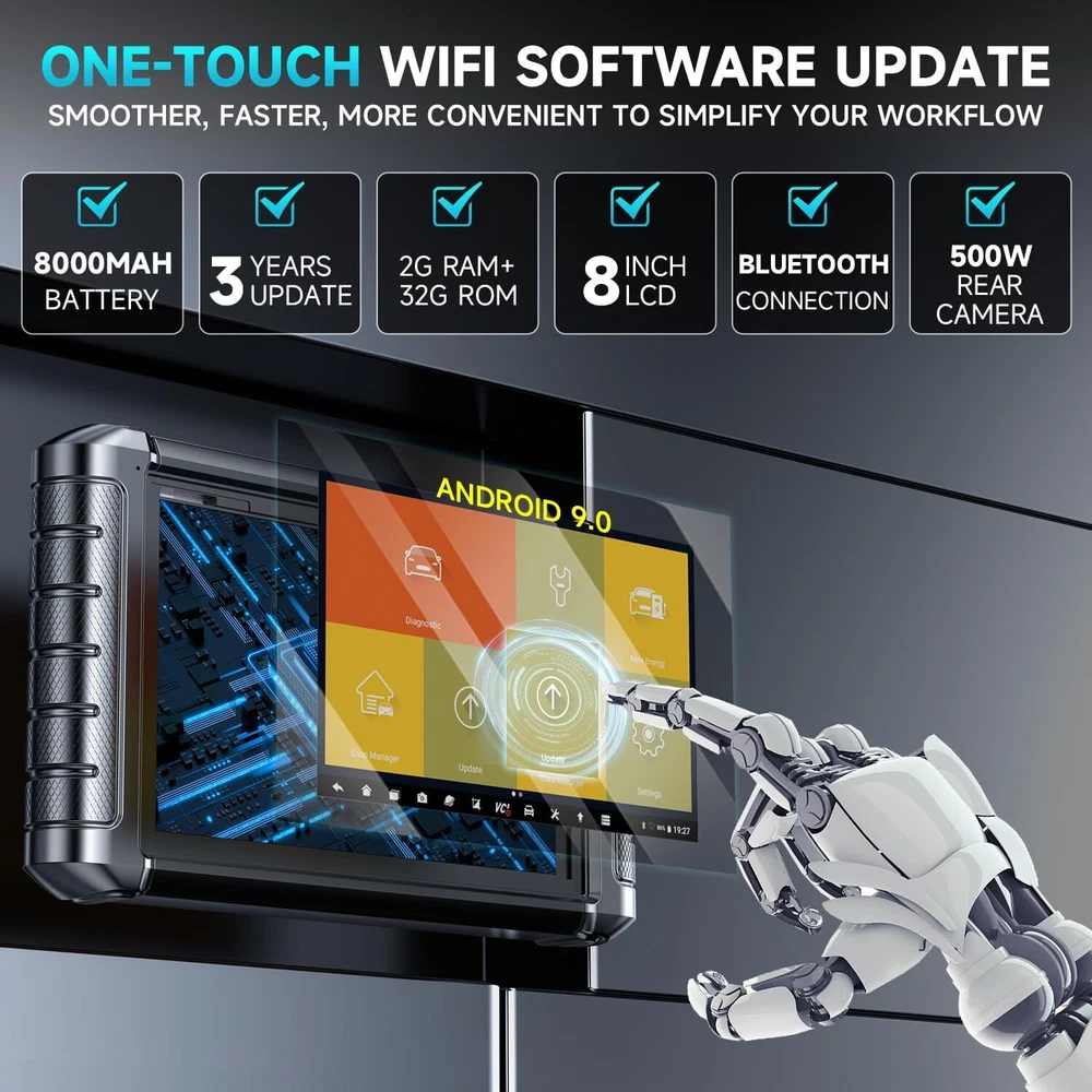 Why Choose FOXWELL NT909 PRO Diagnostic Tool ? E/CU coding ,Online Coding, offline coding : Re-refresh hidden functions to achieve personalization, match components after repair or replacement, and enhance vehicle performance. Bi-Directional Control test & Active Test : receive information and send commands to the system/component to perform active tests. 31+ maintenance reset functions : including the most popular maintenance functions, such as ABS bleeding, injector coding, oil reset, EPB reset, DIY mode, etc. OE-level complete system diagnosis : complete functions for all available system codes, real-time data, freeze frames, ECU information, active testing, etc. Autoauth FCA Guide Function for VAG vehicles . IMMO/key programming function: This function will guide and help you to add, delete, program spare keys, program smart keys, replace smart key , etc. Please note: This function only work for some cars with easy system.You can send the year, model to us to check compatibility. Extensive Compatibility: Extensive vehicle coverage for more than 99% US, Asian and European vehicle makes and models. AutoVin/code scanning and automatic scanning: Automatically retrieve the vehicle identification number for a comprehensive scan of all available systems for quick diagnosis. REPLACEMENT: When an/module is damaged, you have to replace a new one. After replacing the/module, you have to follow the strict procedures of the manufacturer to match, learn, code, or even program it before it functions normally. Multi-language: English, German, Spanish, French, Italian, Japanese, Portuguese, Russian, Polish, Turkish, Dutch, Hungarian, Traditional Chinese. Dual-band WIFI frequency : 2.4Ghz and 5Ghz WiFi can provide the best signal or connection speed. Bigger screen : 8-inch touch screen, 8000mAh/7.6V battery capacity, easy to interpret data and long battery life. Faster running speed: Android 9.0 operating system and Bluetooth 5.0 can run quickly and be easier to operate and share diagnostic reports. Large memory and lens : 2+32G memory and an 8-megapixel camera and endoscope allow you to diagnose the vehicle in all directions. One key update online : Support one-click network uPADate, frequent uPADate to optimize software performance and increase more vehicle coverage. NOTES : NT909 Support wireless tire pressure TPMS Sensors Activation/TPMS Sensors Matching/TPMS Sensors Programming. (Need to be used with Foxwell T10 TPMS Sensor, Does not support single device activation/matching/programming tire pressure). Advanced ECU Coding Restore Functional Status after Repair or Replacement After making repairs or replacements, you can use this bi-directional diagnostic scanner to re-flash the vehicle control modules, clear the original memories stored in Electronic Control Unit, and write the adaptive data into specific components to get your vehicle back on the right track. Customize and Upgrade Vehicle in Your Own Way You can also make manual tuning to break the limitations and restrictions of the market-specific settings of the car when it left the factory. With the help of this scan tool’s online coding, you can disable annoying functions or activate high-end features, make software modifications to alter how it behaves originally. Here are some examples: - Disable the automatic start/stop. So when you press down the accelerator pedal/brake pedal, your car won’t automatically start/stop. - FCA vehicle’s car doors can be unlocked with just one press of the key fob. - Make the moving pointer move, perform self check, and then return to the initial point at the time the ignition is turned on. - The fuel gauge can show the real-time filling quantity of fuel in the tank. - The car lock sound effect will be available at the time the car is locked. - Use the key fob to make all car windows automatically closed with just one press of the lock button. - Keep the daytime driving lights lighted on for 20 seconds. - When you press the brake pedal, your stoplights can be all lighted up. - Your turn signals & rear fog lights can be alternatively flashing. 31+ Hot Service Functions, Accessible for Complete Car Maintenance 1. Oil Reset: reset the oil service lamp after changing the engine oil; re-calculate the optimal oil life change interval for the engine oil maintenance being on schedule. 2. Injector Coding: write the new injector code into the car system for the correct cylinder injection quantity. 3. SAS Reset: reset the steering angle to zero to keep the car running straight. 4. DPF Regeneration (**for both diesel and gasoline vehicles): help remove the particulate matter to keep the trap stable. 5. BMS Reset: register the battery after replacement. 6. Throttle Adaptation: initialize the throttle actuators to the default state. 7. ABS Bleeding: help exhaust the air in ABS system in an easy way. 8. EPB Reset: help replace and reset the brake pad. 9. Immobilizer: disable lost keys to prevent the car from being stolen, and add new keys. **Only available for cars with low-grade IMMO systems. 10. Sunroof Reset: initialize the sunroof when to be locked off, or closed. 11. Suspension Reset: adjust the vehicle body height sensor for level calibration. 12. Gearbox Reset: help complete the gearbox self-learning to improve gear shifting quality. 13. TPMS Reset: reset the tire pressure. 14.Condition Based Service(CBS) Reset: This diagnostic scan tool allows you to reset the engine oil, spark plugs, front brakes, rear brakes, coolant, diesel particulate filter, brake fluid, micro filter, vehicle annual inspection, exhaust emission inspection, vehicle check and etc. It supports checking the time/mileage recommendations for fixed services and it analyzes this data and tells you when a service is next due.And AFS Headlamp Reset, Gear Learning, A/F Reset, Adblue Reset, Coolant Bleed, EGR Reset, Language Change, NOx Sensor Reset, Seats Calibration, Stop/Start, Airbag Reset, Transport Mode, Type Reset, Windows Calibration, AC Sys