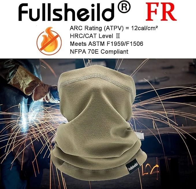 FR Flame Resistant Face Mask Full Cover Neck Gaiter Snood for Welding Hunting FR tag on side seam. SIZE: 25*35CM. These FR neck gaiter is stretchable One Size so it can fit any size head. This 7 oz material is a soft, inherent FR 100% Cotton. They will remain arc and flame retardant regardless of the washes and wear cycles. These neck gaiters are NFPA 70E Compliant, HRC / CAT 2, EBT = 12 cal/cm² and meet ASTM F1506. FR face mask were developed for an electrical utility whose lineman did not want to wear a respirator or balaclava to keep the creosote off their face in Texas summer and winter . Since launching these fire retardant masks, welders, oil & gas workers, miners and electricians all love to wear these for year round cool and protection. This FRC fire resistant fabric is safe to wear directly against your skin when at work. The flame resistant materials used are non-allergenic and will not react with your skin. Machine Wash and the water temperature should be below 40°C/ 104°F; Hand wash under normal temperature.Tumble dry below 60°C/ 140°F. Do not iron or dry clean. No bleach laundry detergent .No distortion or color fading after multiple washings. This lightweight fr neck cover is a great item for summer protection.