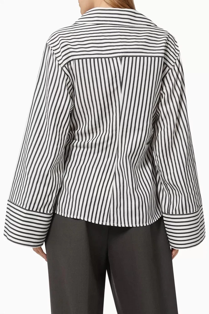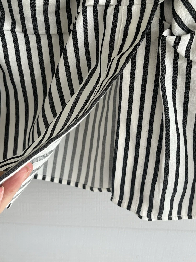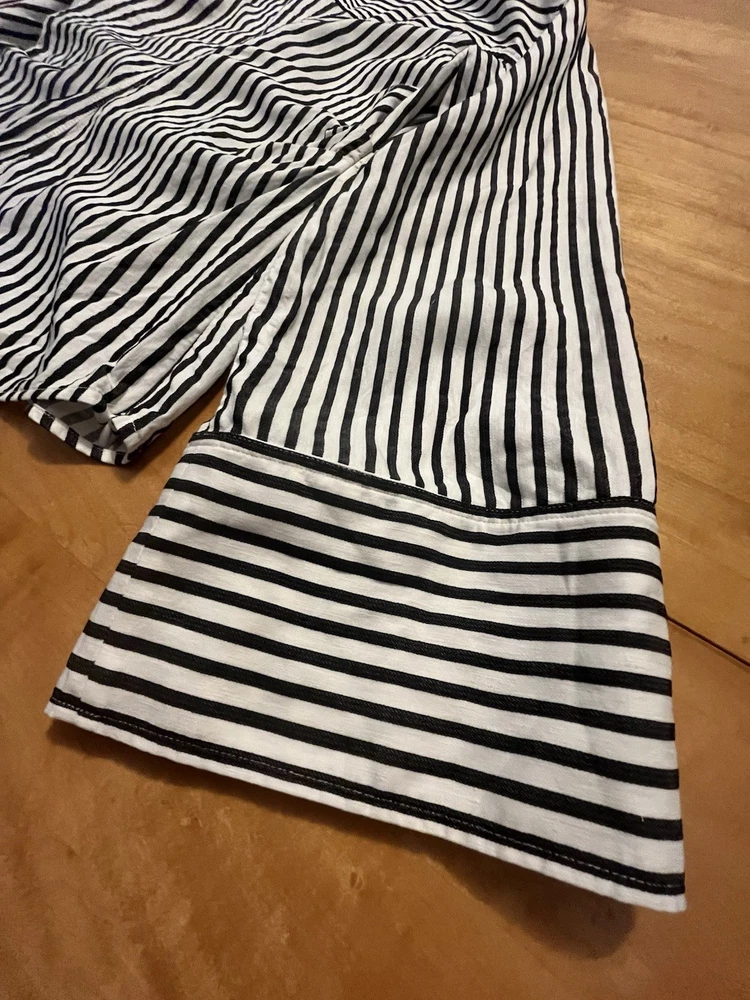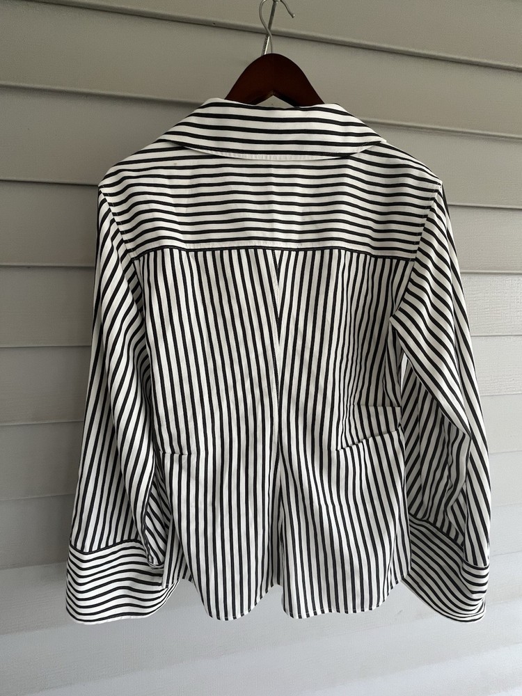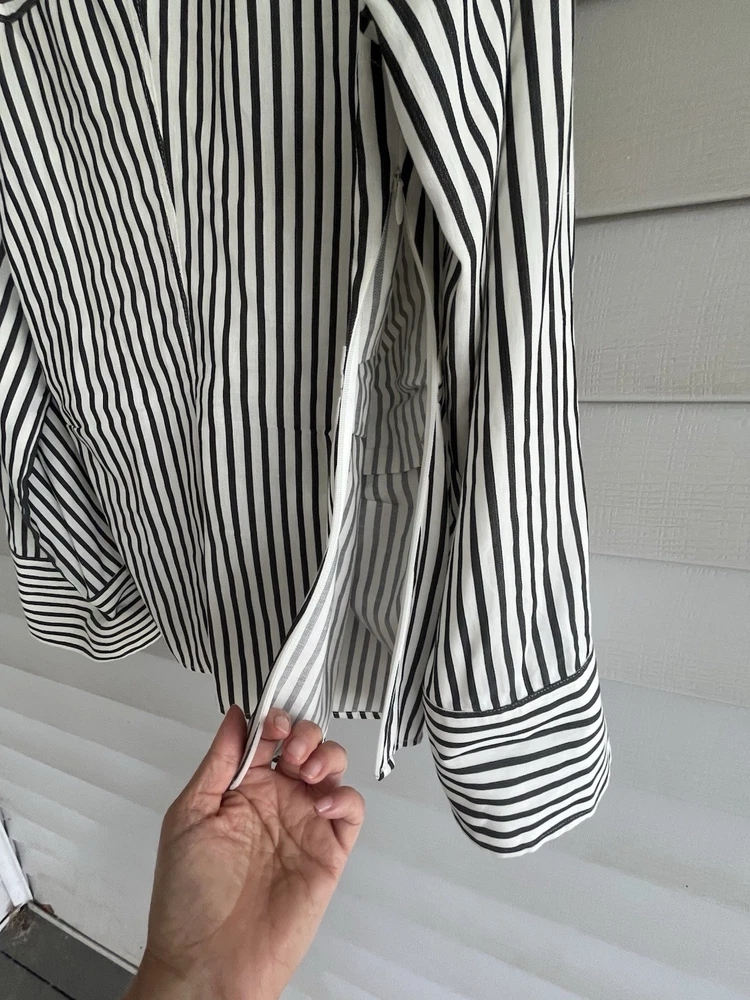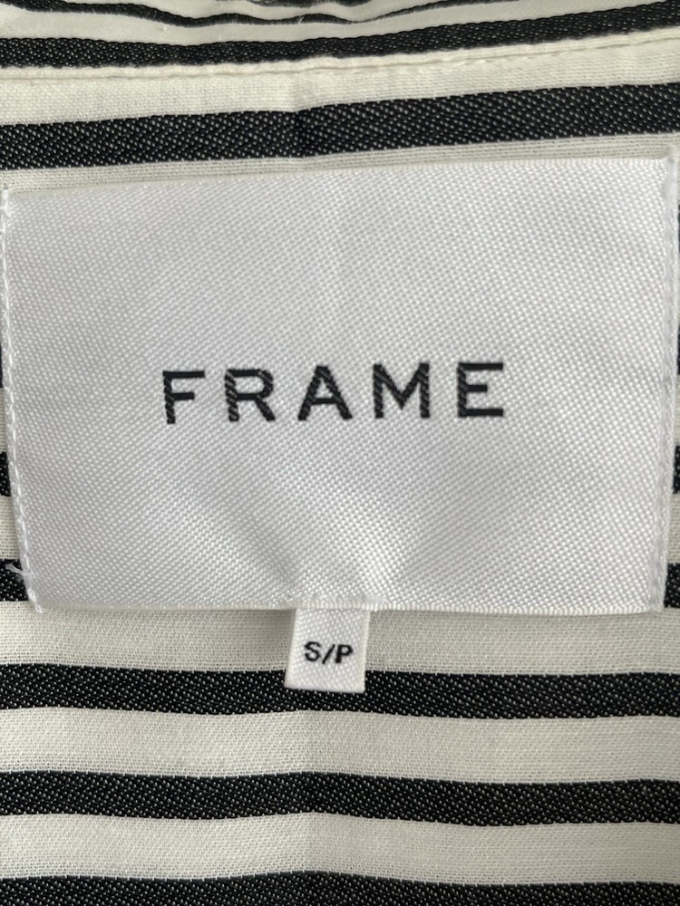 FRAME Wrap Drape Linen Blend Black & White Striped Blouse Wide Sleeve Size = Small Armpit to armpit = approx. 17" Length = approx. 25" Linen, Cotton. Viscose Blend Side Zip Close Career, Breathable, Lightweight, Professional, Business, Night Out, Evening, Flattering, Chic, Elegant, Office