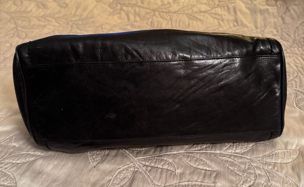 FRANCESCO BIASIA Black Leather Shoulder Bag Approximate Dimensions: 15"x10"x5" No stains or marks seen inside. Super soft leather Engraved hardware (No Key) Excellent Used condition. If You have any questions, please ask.