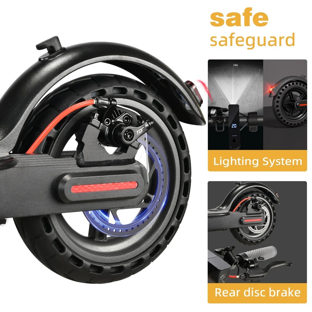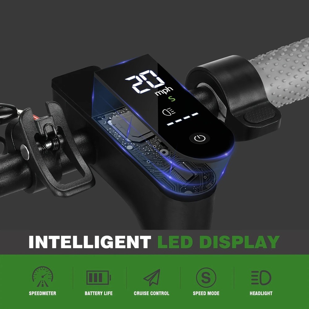 Ride smarter and commute with ease with the FREEBOY J03 Electric Scooter, designed for adults and teens seeking a practical, smooth, and fun transportation option. With a powerful 350W motor, large capacity battery, and included phone holder, this scooter keeps you moving while staying connected on the go. Powerful Motor: 350W front-wheel drive motor delivers responsive acceleration and smooth rides across city streets. Long Range: Equipped with a 36V 10.4Ah battery, offering a range of 18-22 miles (30-35 km) per charge, ideal for daily commuting. Quick Charging: Fully recharges in 5-8 hours, ready for your next journey. Portable & Foldable: Weighing only 27.5 lbs (12.5 kg) with an easy folding design for carrying on public transport or storing in your car trunk. Explosion-Proof Tires: 8.5-inch tires provide a stable, comfortable ride while resisting punctures and flats. Dual Brake System: Features a sensitive dual braking system for reliable and quick stopping power. Built-In Phone Holder: Keep your device secure and accessible for navigation or music while riding. Mobile Charging Support: Charge your phone while riding for uninterrupted connectivity. Smart APP Control: Track speed, battery, mileage, lock the scooter, and manage settings through the smartphone app. IPX5 Waterproof: Designed to handle light rain and wet conditions, ensuring reliability year-round. The FREEBOY J03 Electric Scooter is perfect for commuting, errands, and city exploration, blending convenience, performance, and smart features to elevate your everyday mobility. Note: Range and performance may vary based on rider weight, terrain, and riding habits.