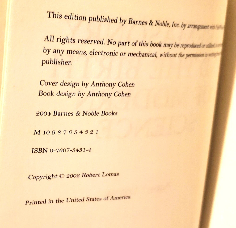 FREEMASONRY AND THE BIRTH OF MODERN SCIENCE Robert Lomas FREEMASONRY AND THE BIRTH OF MODERN SCIENCE, by Robert Lomas . ... ..Published by Barnes and Noble Books in 2004 and is a First Edition…… Illustrated .. DESCRIPTION - Hardback, with DJ........The book measures about 91/2 inches high, and about 5 3/4 inches across the front....Mercy!!!!.....… . CONDITION - The book is in overall very good condition......The pages are good, with lots of lightly marked and underlined passages, and with written notes on the first endpaper .......And the book has a lean to it, which oughta go away when it is placed on the shelf with other books......The cover is solid, with some wear and use.....The DJ is solid, with some wear and curling on the edges.......This is a good, solid book, but it does have the marked passages......I think you will be pleased with it...... ....... PAYMENT AND SHIPPIN ' - 'Course the thrilled winner is gonna hafta pay $4.95 for postage and handlin'.........Multiple purchases save on shippin.. ...Now while you're here, why don't you give my other auctions a look-see...Why, I 'spect I got a wagon load of mighty good books over yonder in my Book Barn... Thanks a heap....!! - - - ol' arkee