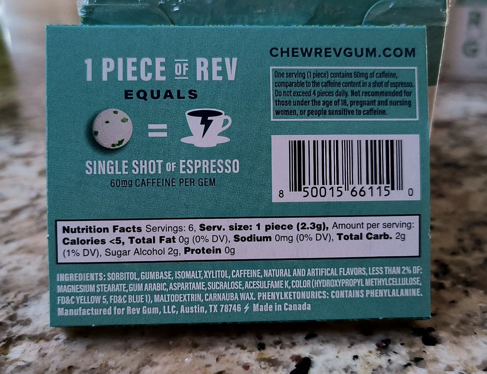 FRESH 12 Packs REV Energy Sugar Free Gum SPEARMINT Regular Strength EXP 03/2026. YOU GET ONE MASTER DISPLAY BOX OF 12 INDIVIDUAL PACKS OF 6 PCS / 72 PCS TOTAL. I have 9 total Display boxes, and since I couldn't see the EXPIRATION DATE on the outside of the sealed master display box, I opened one box (last photos). The last buyer will get the one which I opened, it was sealed. Free Shipping.