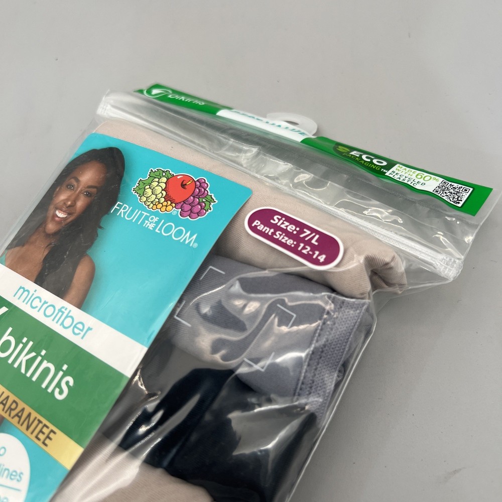FRUIT of the LOOM 6 Pack Size 7/L Microfiber Multi-Color Women Bikinis New