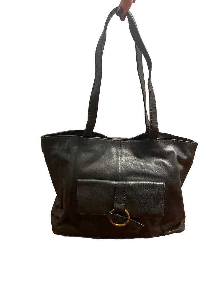 FRYE Madison Harness Tote Shoulder Black Leather MSRP $398+