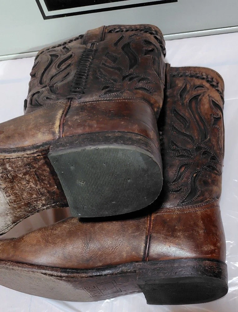 Color:cognac Size: 10M (US size) Sole total length approximately 29.5cm Heel 2.5cm Bottom width approx. 10cm Height 32cm Tube circumference 33cm (It is an amateur measurement) The design has a distressed feel from the beginning. The boots have been used a few times and there is color transfer to the inside of the boots. If you have any questions about other product details, please contact us before purchasing. Thank you for understanding. For "remote delivery areas", additional fees will be charged. Import duties,taxes and charges are not included in the item price or shipping charges. These charges are the buyer's responsibility. These charges are normally collected by the delivering freight(shipping) company or when you pick the item up. -do not confuse them for additional shipping charges. We do not mark merchandise values below value or mark items as "gifts". -US and International government regulations prohibit such behavior.