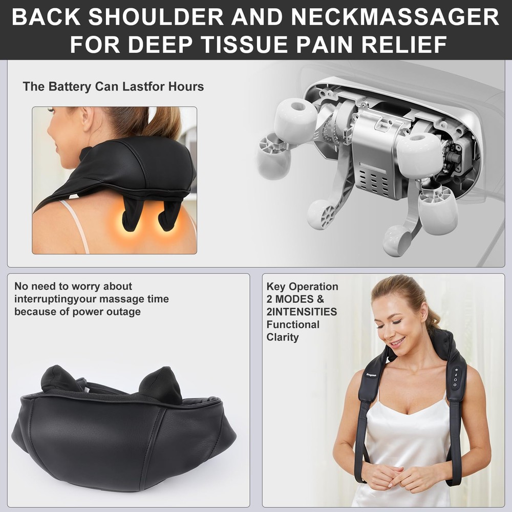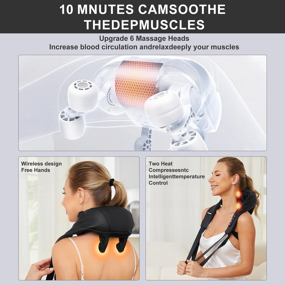 What Sets Us Apart? 🏆Brushless Motor/ 🏆Exclusive Patent/ We're ready for you: USB Wall Charger/ Noise Free Motor/ Vegan Leather/ Removable Cover/ Customer Support Kneading Category Innovators : New 5D Kneading Neck Massager(Exclusive Patent brushless Motor Design) .made of premium breathable mesh and PU leather,massager is the best Valentines Day Gifts for Him/Her/Boyfriend, Dads, Moms, or any lovers. Warming Tips: massagers are covered by a 1-year warranty. If you have any problem, firstly please feel free to contact us.Our massager ensures your peace of mind. 6 Massage Heads for All-round Massage: The Neck Massager utilizes innovative 6.0 massage nodes that provide wider massage coverage, targeting not only the neck but also the trapezius and shoulder muscles,Reach areas that other massagers can't. The soft silicone wrapped massage heads provide a gentle soothing touch, ensuring a comfortable and relaxing massage for your skin. Simulate Human Hand Grasping and Kneading: The ergonomic neck massager allows you to enjoy the ultimate relaxation. Mimicking the hands of a physiotherapist, it targets the deeper tissues for a thorough and invigorating massage to say goodbye to muscle fatigue, with 2 adjustable massage levels to suit your preferences and needs. Massagers For Neck And Shoulder With Heat: The heated neck massager provides faster, more consistent soothing heat (113°F). It dramatically relieves deep muscle tension, improves circulation and is up to 90% effectiveness in relieving chronic neck pain, nerve compression, migraines and TMJ. New Upgraded Adjustable Strap Design: Experience the freedom of hands-free massage with our unique backpack Neck Massager. Whether you are working at your desk or relaxing at home you can enjoy a soothing massage that weighs only 2.2lb without restricting or burdening your shoulders Sculpted For A Massage Experience Resembling Human Touch: Inspired by the techniques employed by professional therapists, the MINI Cervical Massager is expertly designed to provide targeted relief to your neck and shoulders, alleviating muscle fatigue akin to the touch of human hands. Optional Hands-Free Operation: Our Innovative Design ensures a completely hands-free experience, freeing you from the hassle of holding the massager while you enjoy its soothing effects. Unleash The Power Of Neck Massager :Experience The Difference With Our Premium Product,Standing On Its Own Without Comparing To Lower-Priced Alternatives. Muscle Therap/Tissue Therapy/Pain Relief/Flexibility Improvemen/Christmas Gifts for Lovers/Dad/Mum/Man/Girls