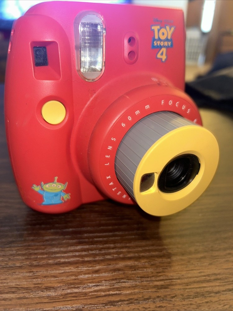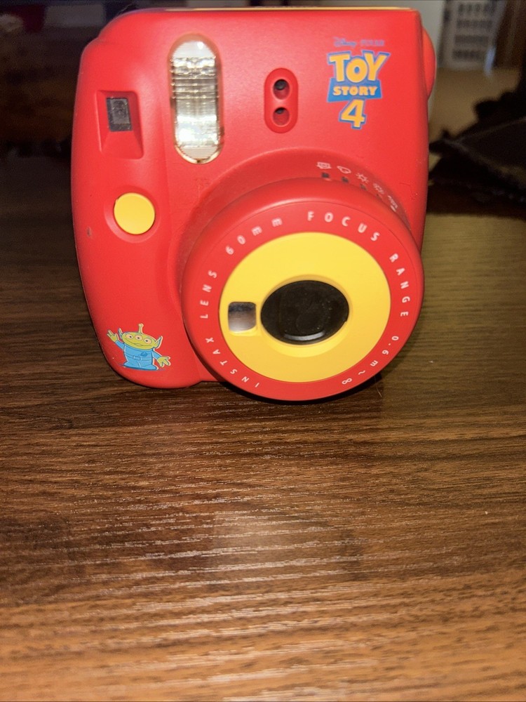 The FUJIFILM Instax Mini 9 Toy Story 4 Instant Camera in Red Limited Edition with a manual focus and built-in flash, never had any problems developing pictures. Comes with original instructions and bag, accessories not included.