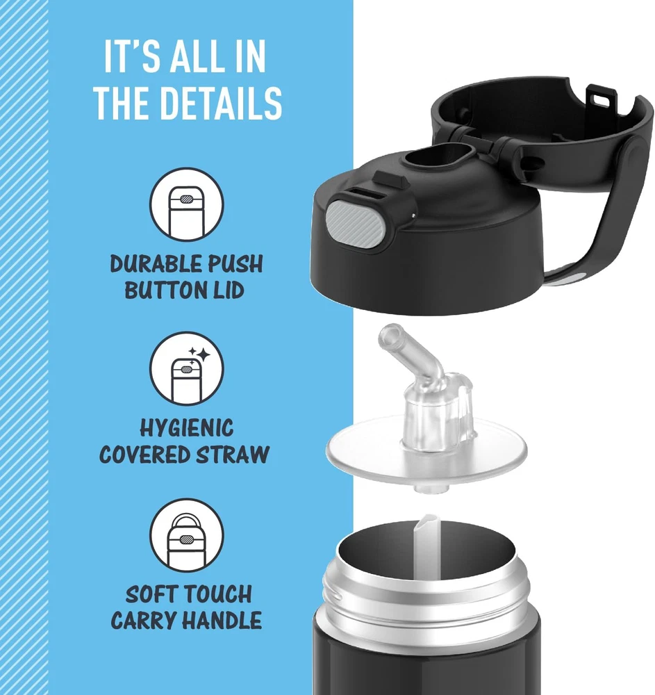Store New Arrivals Add to Favorite View Feedback Contact FUNTAINER Water Bottle with Straw - 12 Ounce - Kids Stainless Steel Vacuum Insulated Water Bottle with Lid, Black Description Item model number F4100BK6 Capacity 12 ounces Number of Items 1 Pattern Solid Color Country of Origin China Is Oven Safe No Theme Color With Lid Yes Department unisex-adult Is Microwaveable No Cap Type Flip Top Cap Product Dimensions 3.1"W x 6.9"H Material Stainless Steel Age Range (Description) Kid Model Name FUNTAINER 12 Ounce Bottle Is Dishwasher Safe Yes Item Weight 7.8 ounces Special Feature Sweatproof, Cold 12 Hours, Double Wall Color Black Base Diameter 2.7 Inches Recommended Uses For Product Water Included Components kids water bottle Product Care Instructions Top Rack Dishwasher Safe Stays cold: THERMOS vacuum insulation technology keeps drinks cold for up to 12 hours. Our stainless steel water bottles are built so their drinks are as cool on the inside as they look on the outside. Not for hot liquids Kid-friendly design: This reusable metal water bottle is lightweight and compact with a push button lid so it’s easy to carry and open. The integrated carry handle features a soft touch grip Daily durability: Perfect kids water bottle for school and daily use. Made with high-quality 18/8 stainless steel construction to handle drops, dings and provide everyday durability and reliability. Comes in a variety of fun colors and patterns Easy care and cleaning: Help keep germs away with a hygienically covered pop-up straw that’s also removable for easy cleaning. This kids water bottle is dishwasher safe, though washing by hand is recommended Protect what you love: With 120 years of heritage, Thermos Brand food and beverage containers keep things fresh, sealed and protected. Trusted since 1904 because our products help make everyday life a little better, every time The FUNtainer® 12oz Vacuum Insulated Stainless Steel Water Bottle with Straw keeps drinks cold for up to 12 hours. Our kids water bottles are built so their drinks are as cool on the inside as they look on the outside. Kids stay hydrated and parents stay happy. The double wall stainless steel construction is built to handle drops, dings and assorted roughhousing. Includes an integrated carry handle with soft-touch grip, making it easy for kids to carry with them throughout the day. Help keep germs away with the hygienically covered silicone straw which is removable for easy cleaning. To clean, you can pop your FUNtainer water bottle in the dishwasher; however hand washing is recommended. Not for use with hot liquids. ABOUT US We offer the best prices around on high quality products. Our E-store includes media such as books, movies, music and games while offering electronics, toys, sporting apparel, clothing, tools, general home, garden items and more. SHIPPING We are always working hard to ensure your package arrives as soon as possible. Please understand that some factors like weather, high postal traffic, and the performance of shipping companies are outside of our control. We offer free shipping to the lower 48 states and ship within 2 business days of payment, usually sooner. We do not accept P.O. Boxes. Please provide a physical address. For shipping outside of the continental USA, we only use eBay's Global Shipping Program.The item is shipped to KY and then sent to the rest of the world. International customers are responsible for all duties and taxes. Continue to check out in order to calculate costs for shipping the item to your country. Messages regarding eBay's Global Shipping Program MUST be directed at eBay EXCLUSIVELY. RETURNS We offer a 30-Day Return Policy on items which you are not completely satisfied with. You have the option for a full-refund or an exchange of the item. No returns are available on items shipped outside of the USA. PAYMENT We accept PayPal. CONTACT US This page content is yet to come Please ad us to your favorite seller and visit again later Thank You CUSTOMER SATISFACTION We try our very best to make sure every customer is completely satisfied. If there's a problem, message us! We're happy to help. WE ACCEPT Copyright © 2021 AutoDS. | All Rights Reserved