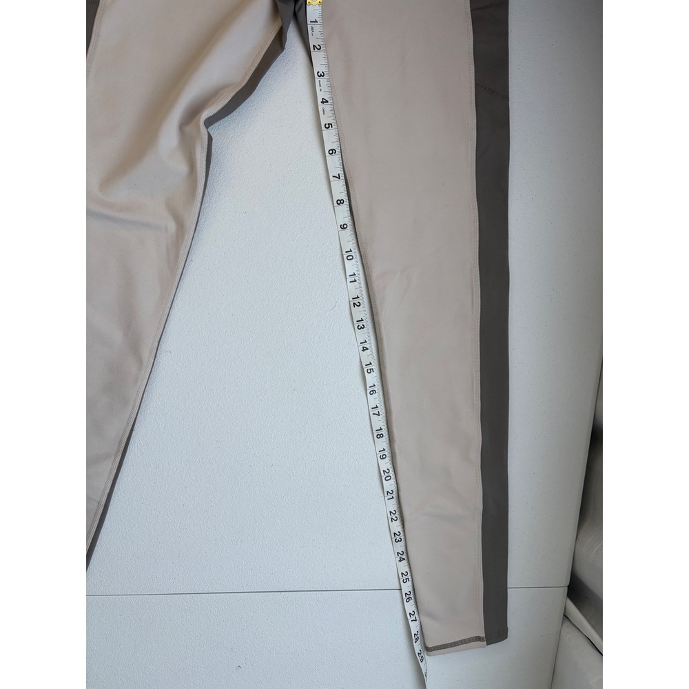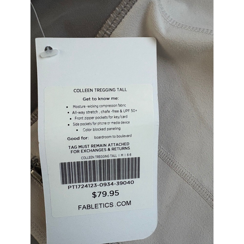 Stylish and functional athleisure leggings designed for the modern woman. These leggings feature a unique color-blocked design, combining neutral tones for a sophisticated look. Equipped with front zipper pockets for keys or cards and side pockets perfect for a phone or media device, these leggings offer convenience and practicality. The moisture-wicking compression fabric ensures comfort during workouts or everyday activities. Ideal for transitioning from boardroom to boulevard, these leggings are perfect for yoga sessions, running errands, or casual outings. Color: Beige Department: Women Type: Leggings Material: Polyester, Elastane Features: Pockets, Zip Pocket, Compression, Moisture Wicking, Breathable Pattern: Colorblock Character: Pocket Performance/Activity: Yoga, Running & Jogging, Gym & Training, Pilates Occasion: Activewear, Casual Keywords: Fabletics, treggings, leggings, color blocked, athleisure, activewear, workout leggings, yoga pants, pockets, zipper pockets, moisture wicking, compression leggings, tall leggings, size M