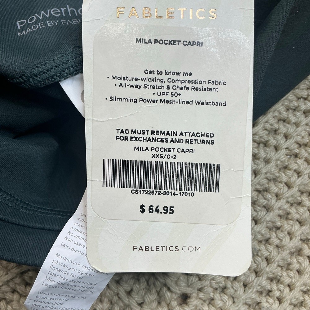 Fabletics High Waisted Mila Pocket Capri Everglade Size XXS / 0 - 2 New with tags Grayish green color “ Stay connected at the gym with our power mesh pocket, high-rise capris, built to keep you sweat-free and chafe-free, but never tune-free. (External) Pocket All-way Stretch Breathable Chafe-Resistant Hidden Pockets Moisture-Wicking UPF Protection Power Mesh PowerHold ® is designed with the highest compression to flatter your figure 88% Polyester/12% Elastane. “