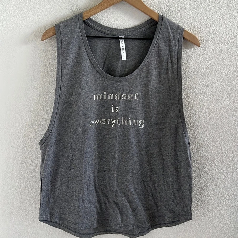 Fabletics Janis Muscle Tank Gray Mindset is Everything Graphic Active Yoga Tank Preowned. Size: Medium Underarm-to-Underarm: 19.5" Length: 24" | 25.5" Measurements are approximate and taken flat. 50% polyester/50% cotton ITEM 1759 graphic active tank, mindset, focus, workout tank, motivational workout, motivational, active, yoga, janis Model images used to show style only.