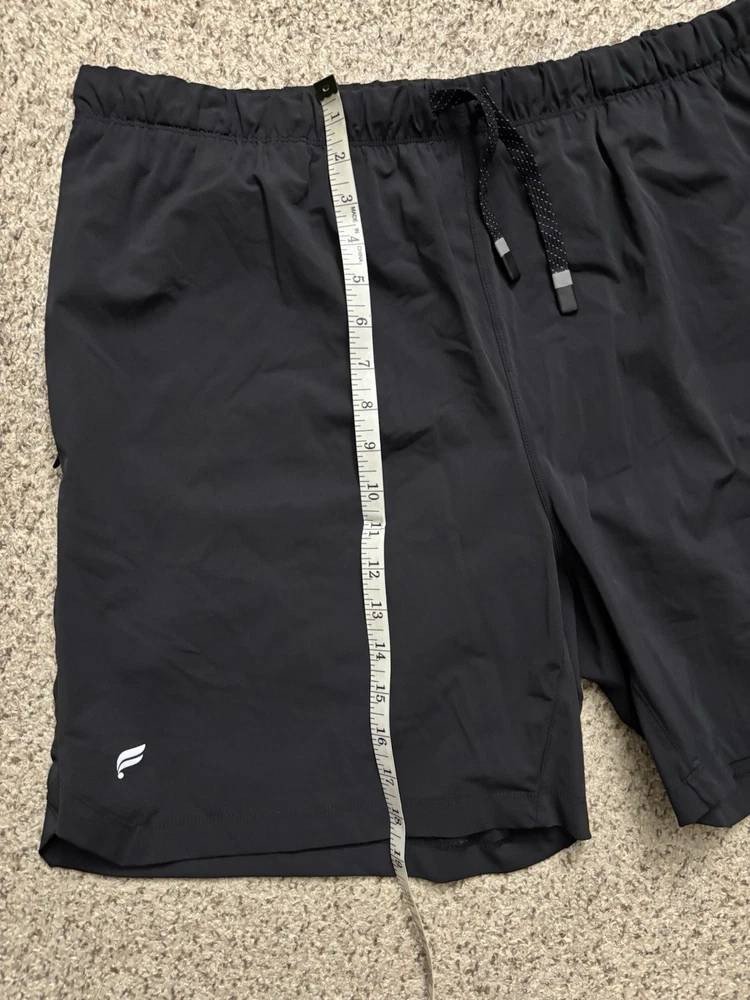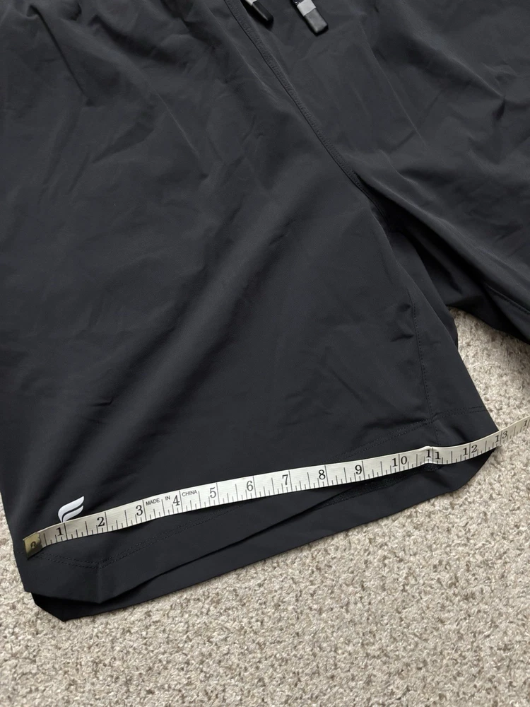 The Fabletics Shorts for men in size 2XL (40") are perfect for the gym and training sessions. They are black in color with a solid pattern and a 7-inch inseam, making them suitable for all seasons. The shorts feature a drawstring closure, elastic waist, and moisture-wicking fabric, ensuring comfort and performance during your workouts. Made from a blended fabric of nylon and spandex, these athletic shorts are machine washable for easy care. Perfect for outdoor sports or running and jogging, these Fabletics shorts from The One Short lineup offer a quality fit for active men.