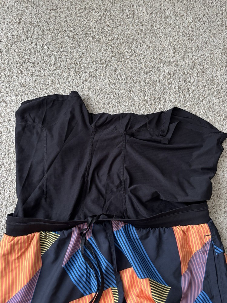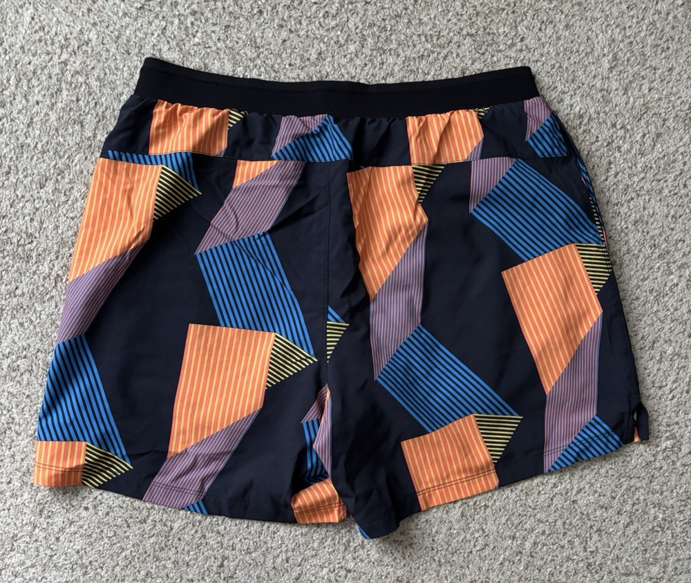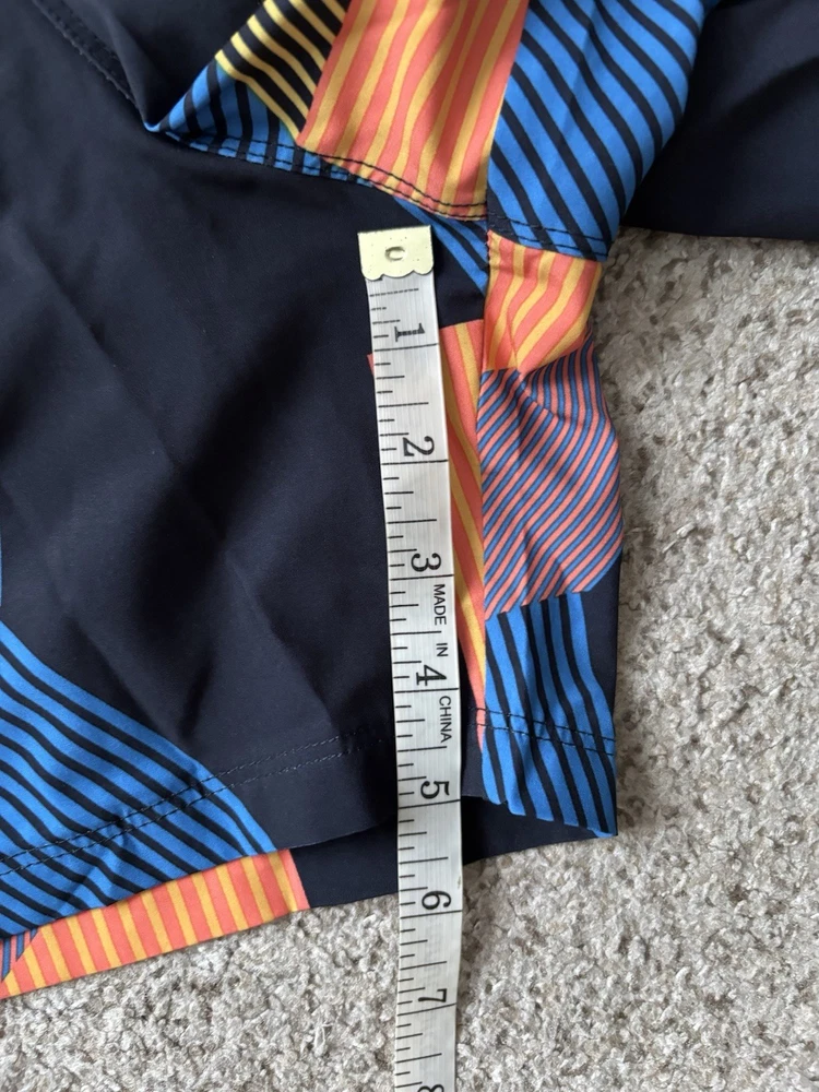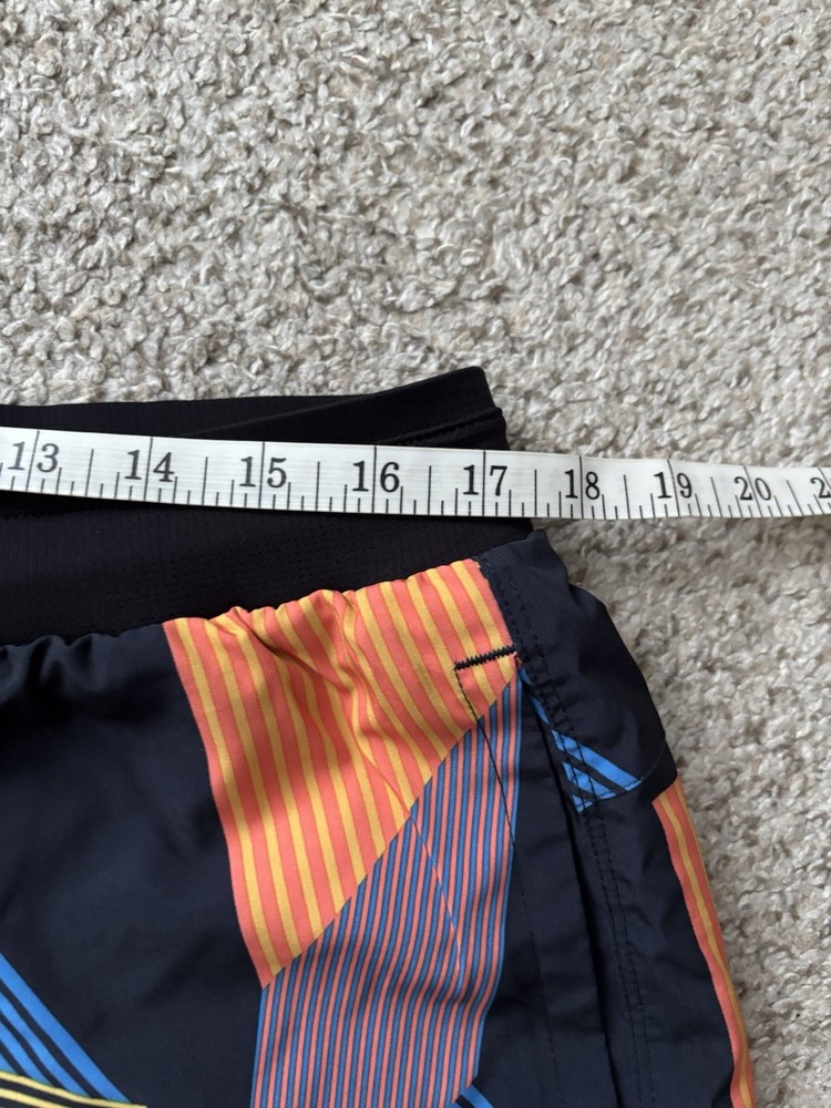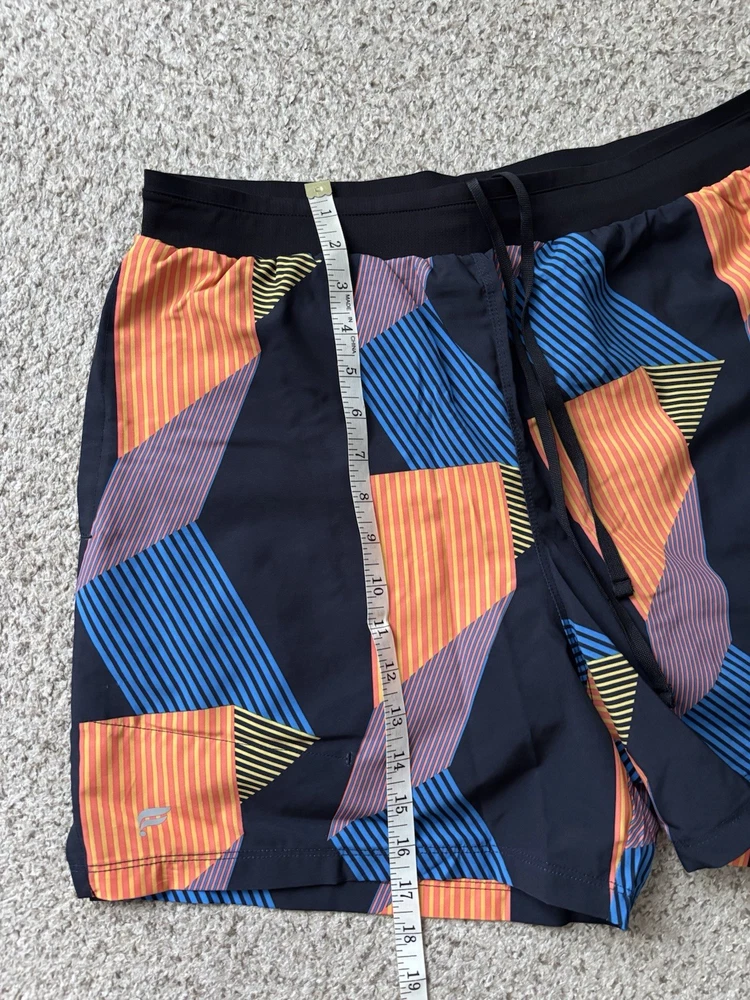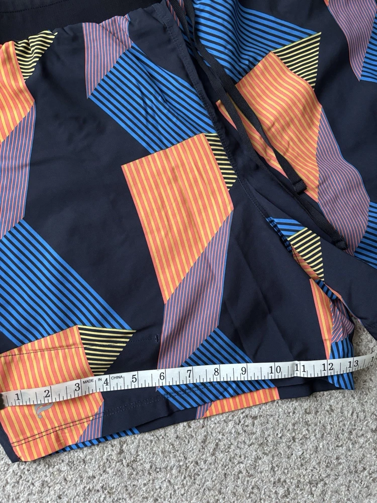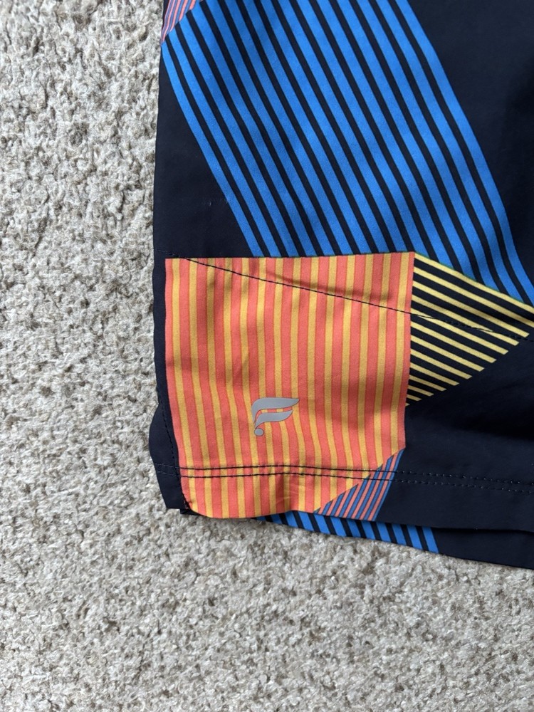 Missing size tag. Waist stretches comfortably between 34"-36", possibly a size Large. These Fabletics Men's Size Large Black Geometric Fundamental II Shorts are perfect for outdoor activities and sports. Made of a blended polyester and spandex fabric, they offer a comfortable athletic fit with a drawstring closure for a customized waist size. The 5-inch inseam and moisture-wicking features make them ideal for summer and spring workouts like gym training and running. The black geometric pattern adds a stylish touch to these versatile activewear shorts. Machine washable and quick to dry, they are a practical and stylish addition to any man's wardrobe.