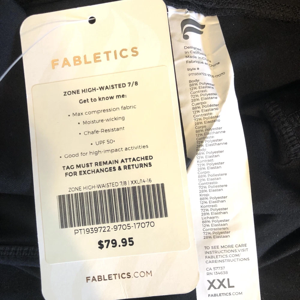 Fabletics Women's XXL Zone High-Waisted 7/8 Leggings Max Compression Black NWT