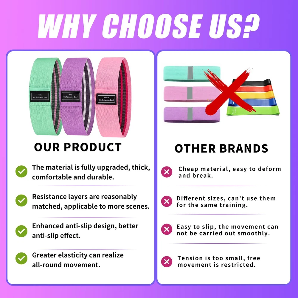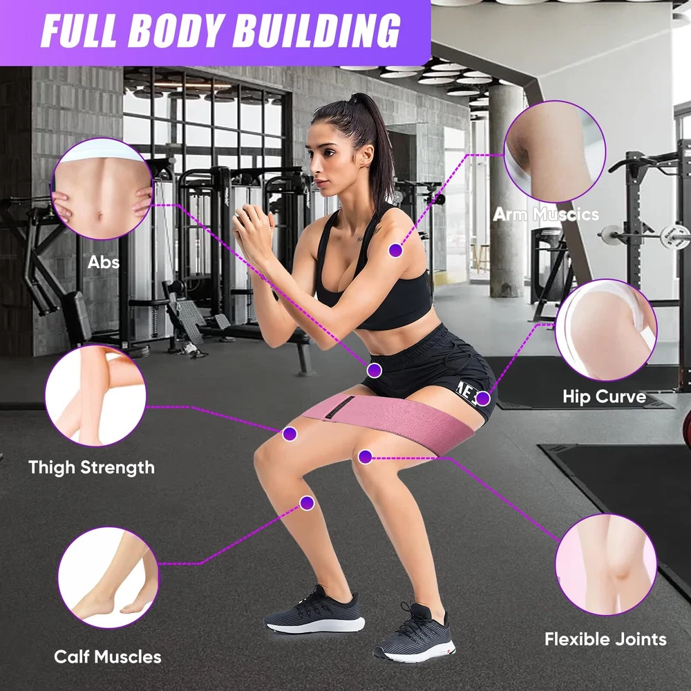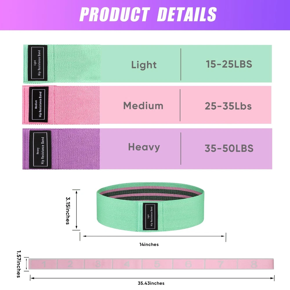 【Comfort & Non-Slip Durable】exercise belt is made of high quality polyester cotton material with high quality elastic latex yarn, high resilience, wider and thicker design, which enhances the comfort and durability of the hip belt and prevents it from breaking and sliding during use. 【Multi-purpose】Simple but effective workout will increase strength and improve muscle laxity, elastic band for lunge, squat, sit-up, straight leg raise and other exercises, can help sports athletes, physical therapy, rehabilitation, wrestling, bodybuilding, Pilates, yoga, taekwondo, general fitness and so on. 【Multiple Resistance Levels】The same size squat bands with different resistance can meet the different stages of training needs of men and women. Different colour sets, green band, purple band, black band, grey band, pink band. Segmented double-layer digital stretching bands are suitable for dance training. 【Lightweight and Portable】The elastic tension bands are lightweight and easy to store, convenient to workout anywhere outdoors, office, home, gym or when travelling, a smart choice for muscle building and rehabilitation exercises. 【Brand Service and Guarantee】If you have any dissatisfaction with products, please email us, we support unconditional return and exchange, and we hope you make better suggestions. Thanks!