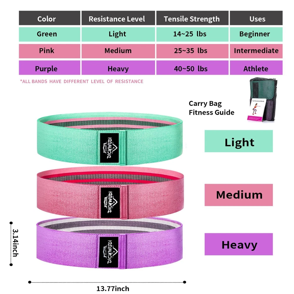 šŸ” 怐High Quality Fabric Material怑The exercise bands resistance bands set are made of high quality fabric material with exquisite weaving process. The silky smooth material enhances the comfort and durability of the hip exercise band. šŸ” 怐MULTI FUNCTIONAL PURPOSE怑 Sports bands can be moved, arms, hips, legs, etc. It can make your muscles stronger or more plump your hips. Shape the perfect figure. šŸ” 怐3 RESISTANCE LEVELS怑There are 3 different color resistance bands, the same size and different strengths. The cloth resistance bands provides greater flexibility and more sports selectivity for your exercise. šŸ” 怐NON-SLIP AND DURABLE怑The leg and hip exercise band set is non-slip and very wear-resistant, can be used with fitness equipment and will not lose elasticity due to frequent use and activity. šŸ” 怐LIGHTWEIGHT PORTABLE怑Powerful workout bands for women and men, The resistance zone is particularly lightweight. It only uses a small space to carry it. It is very easy to carry. You can easily put it in the suitcase and handbag.